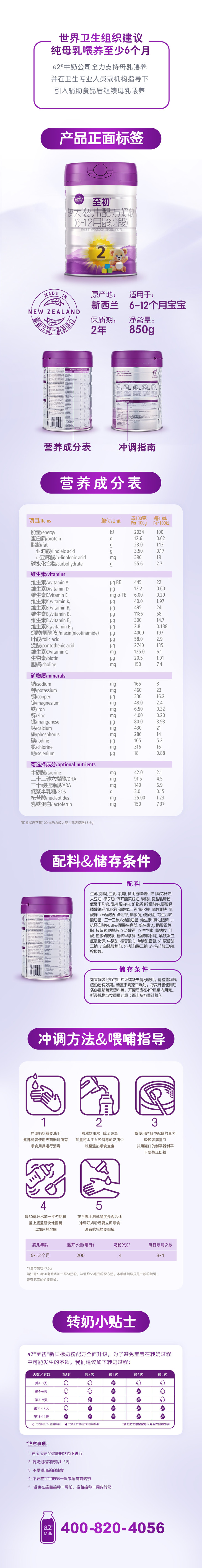 a2至初2段较大婴儿配方进口奶粉(6-12月龄)大罐850g