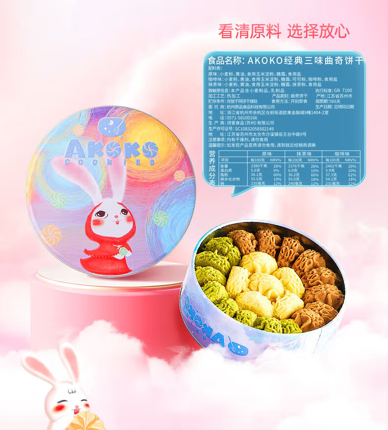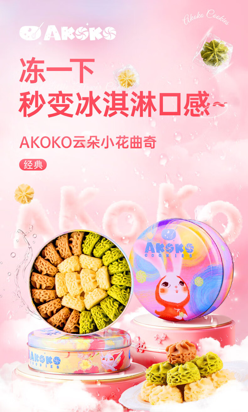 AKOKO经典小花曲奇230g(草莓味+海盐味+可可味)230g