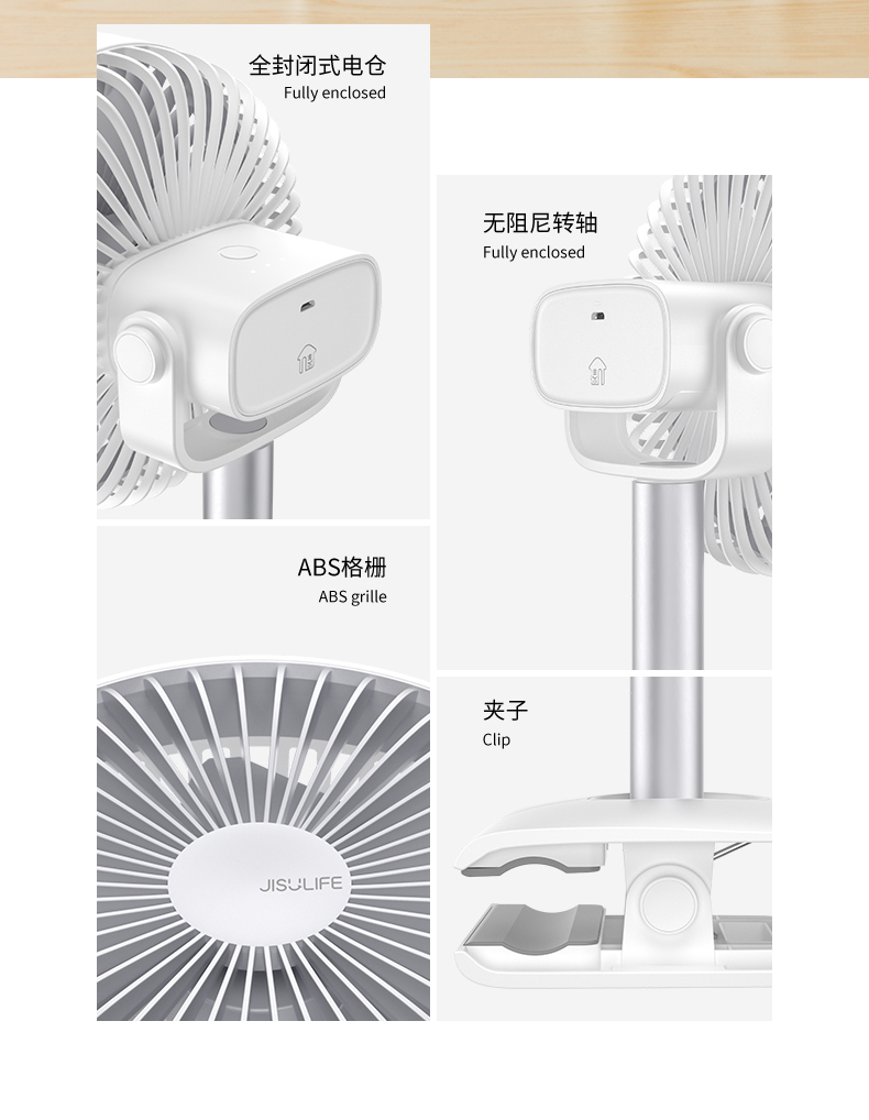 几素电风扇夹式学生宿舍小型usb小风扇桌面办公台式可充电厨房迷你便携式婴儿车床头轻音夹子电扇家用夹桌两用+15h长续航+720°调节