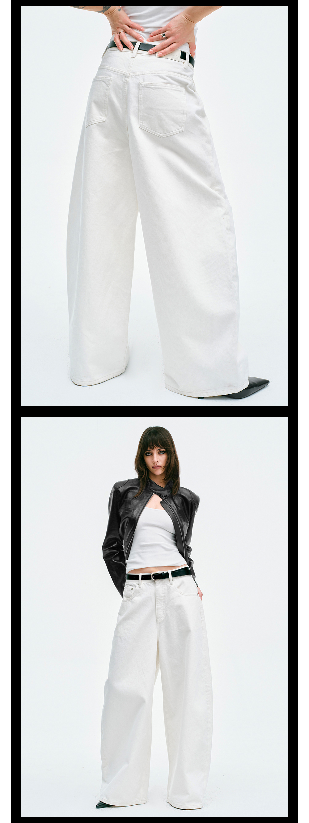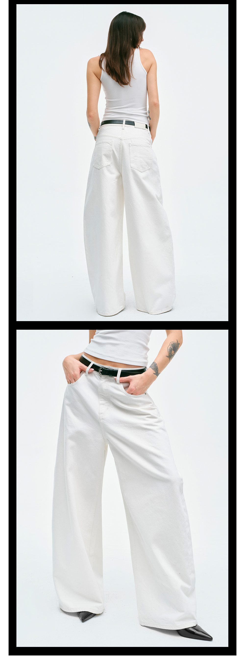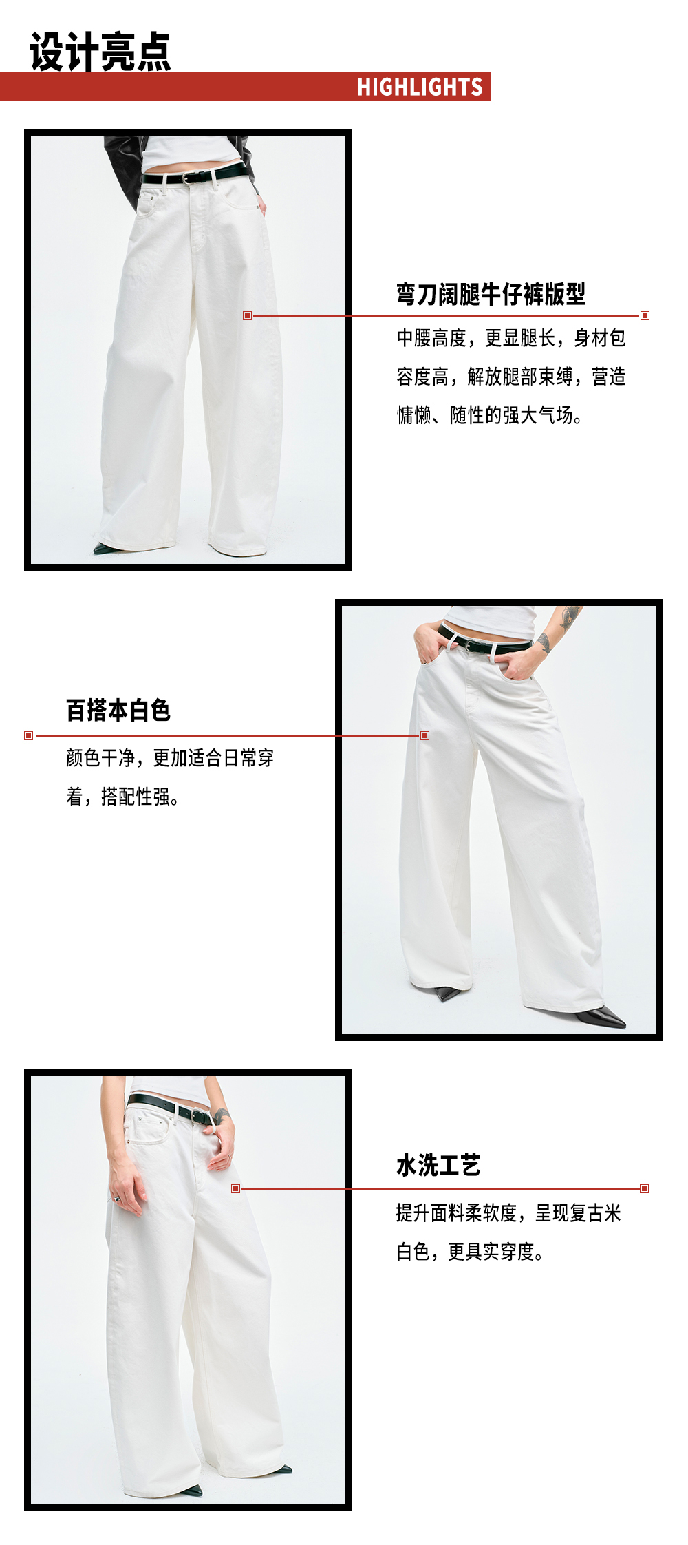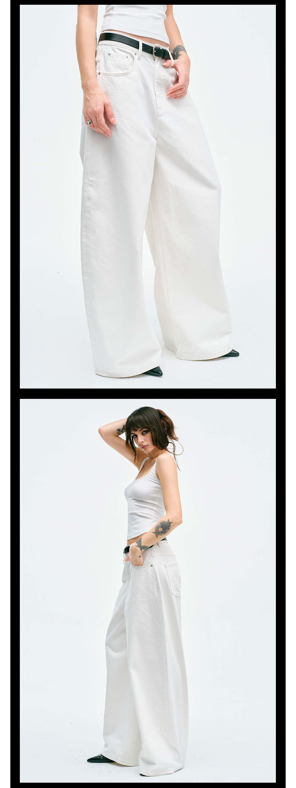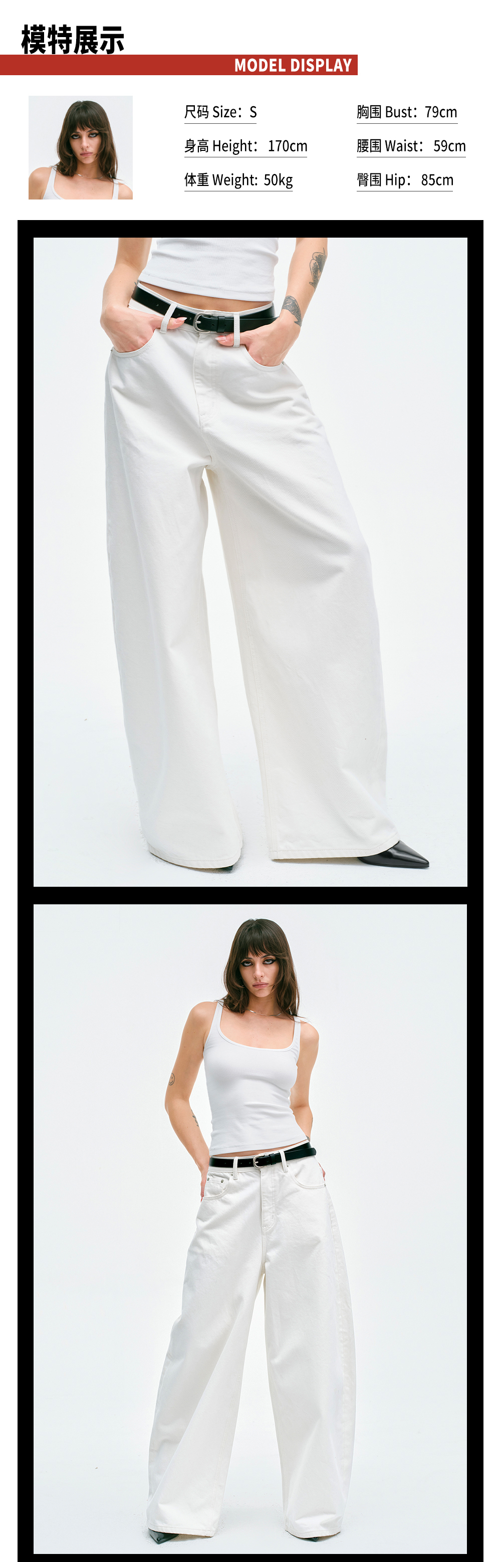 TR她热 长腿滤镜 白色水洗复古休闲百搭阔腿牛仔裤长裤