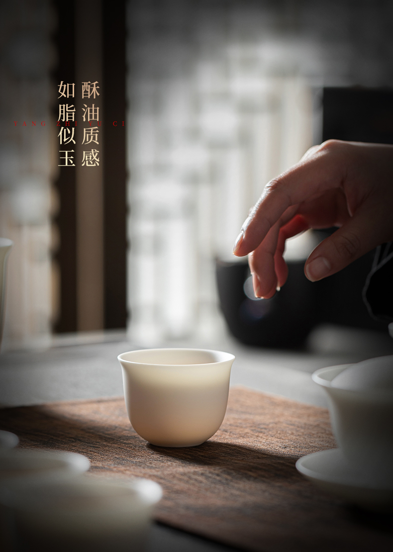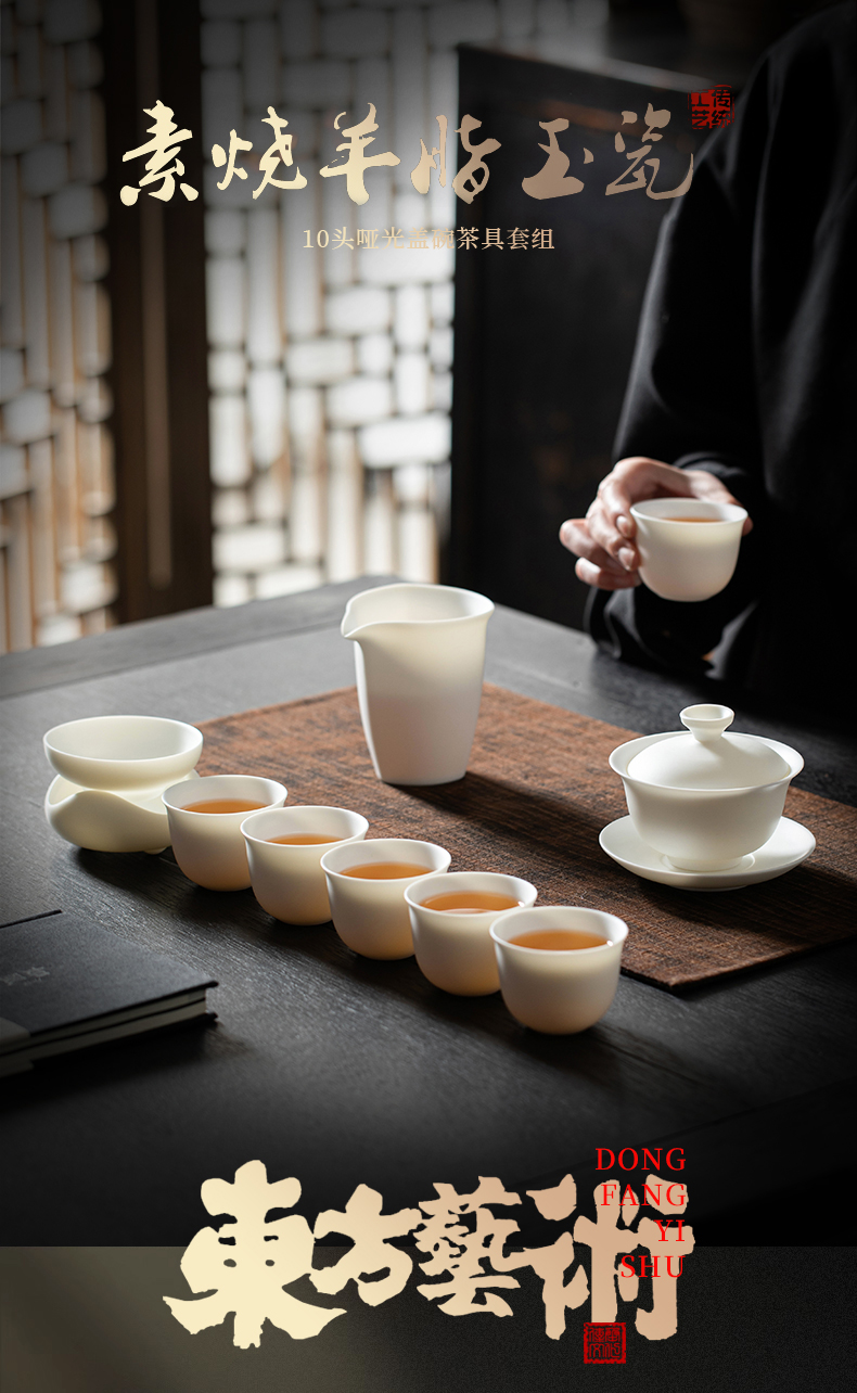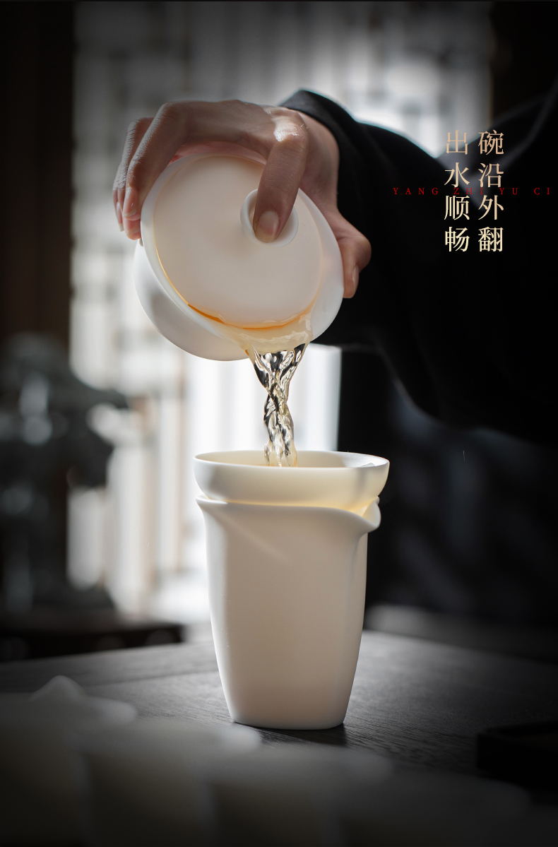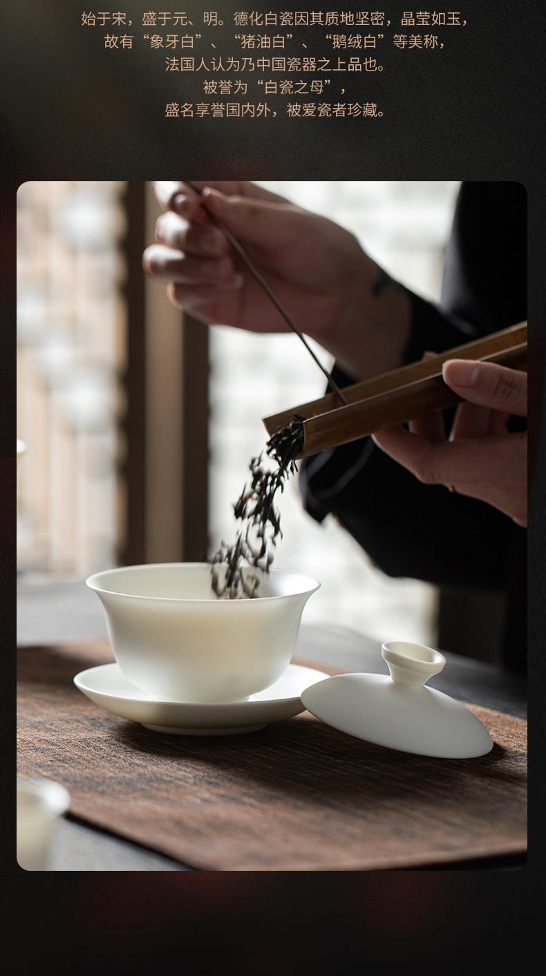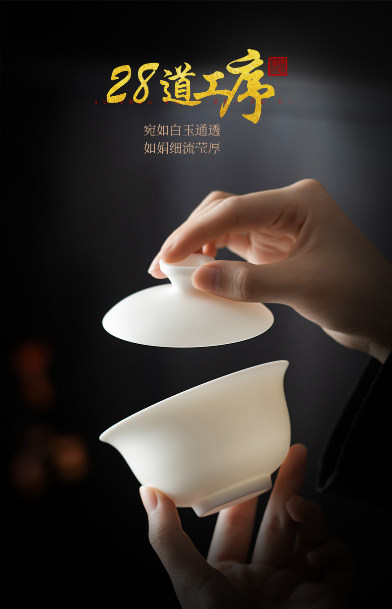 罗莱一品 留白主义-哑光羊脂玉瓷盖碗茶具套组