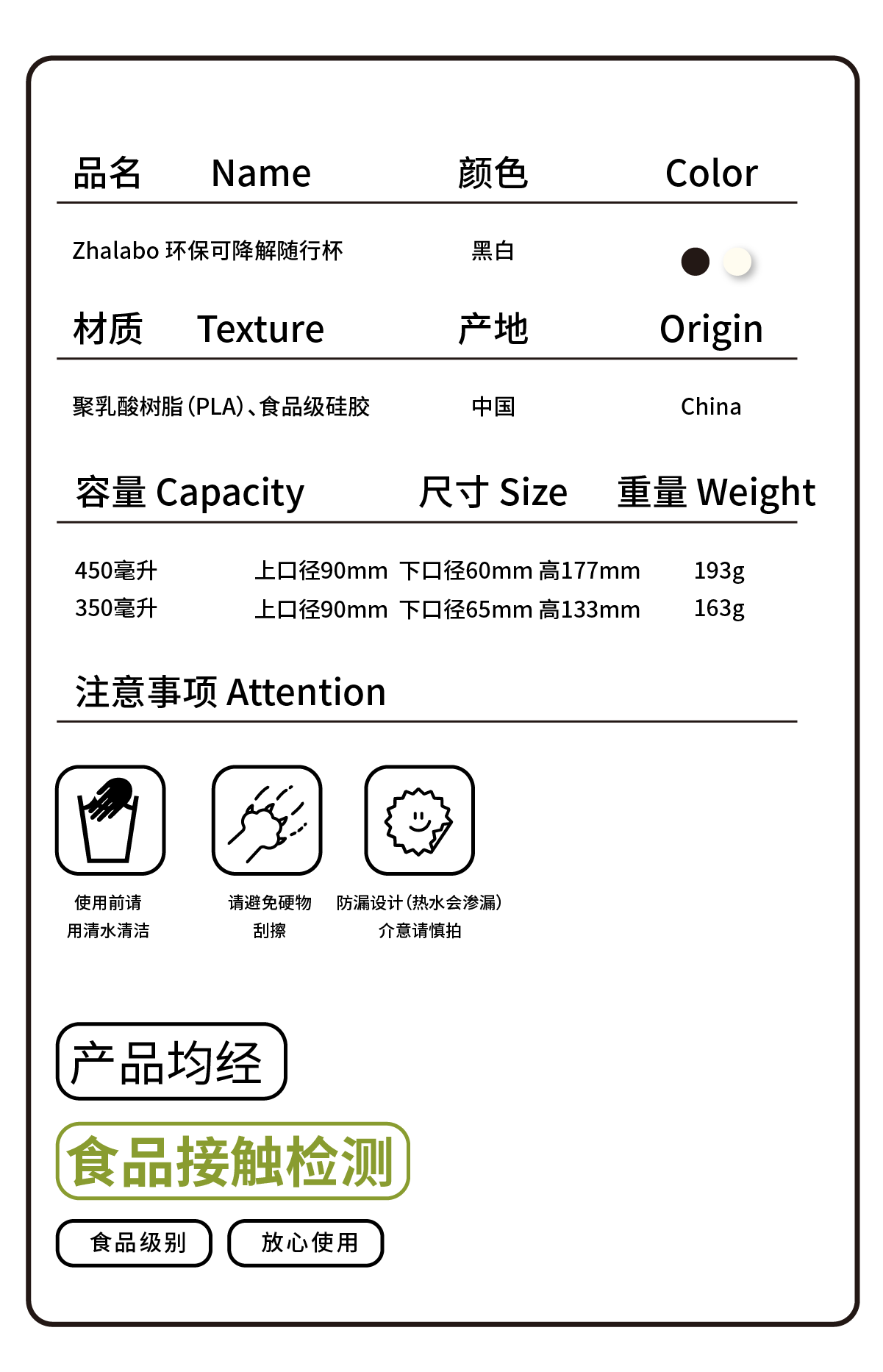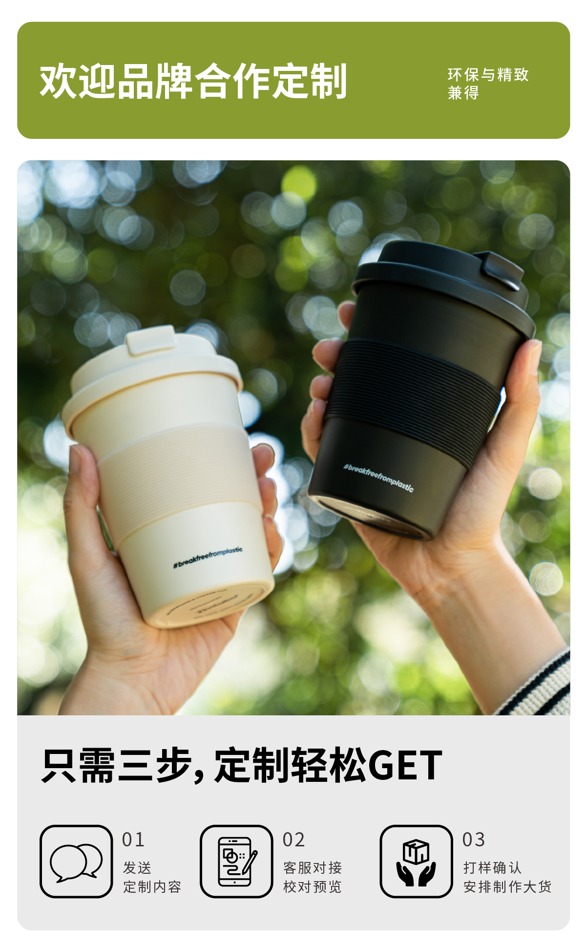 【定制产品拍下不发货】环保可降解PLA随行杯-扣盖版定制logo