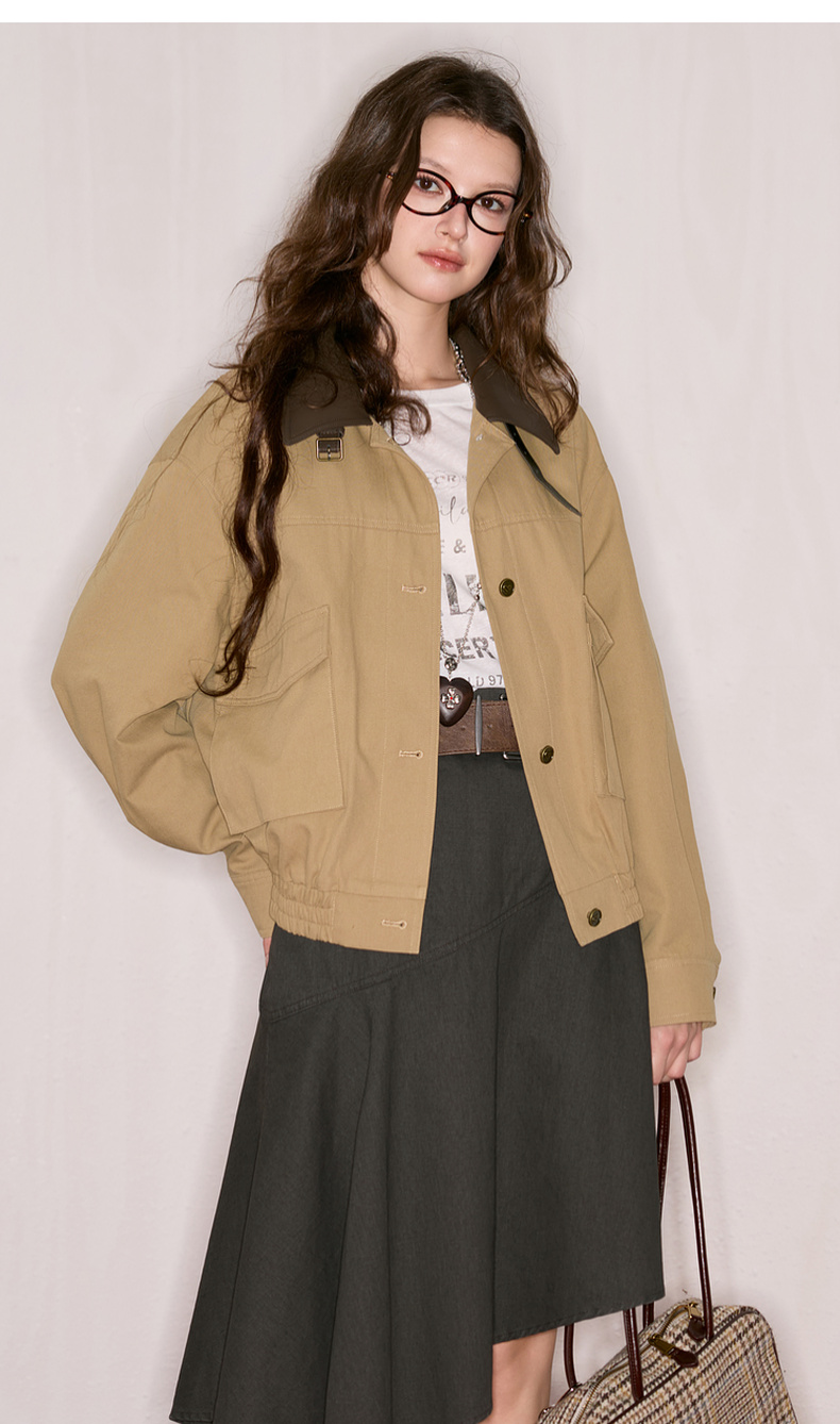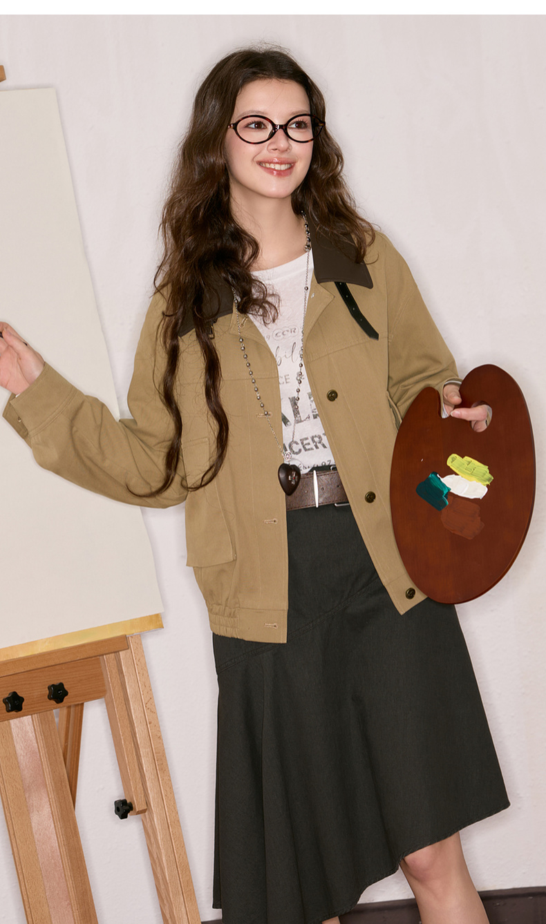【100棉】三彩独醒2025秋季新款复古工装风廓形外套宽松开衫F