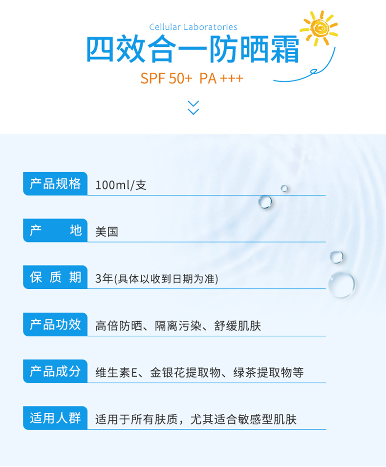 Cellular Laboratories 四合一防晒霜SPF50+-保税仓发货