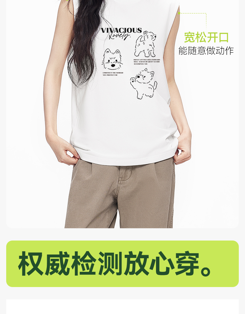 「棉的美学」运动汗衫纯棉坎肩背心小狗印花夏季透气圆领无袖T恤