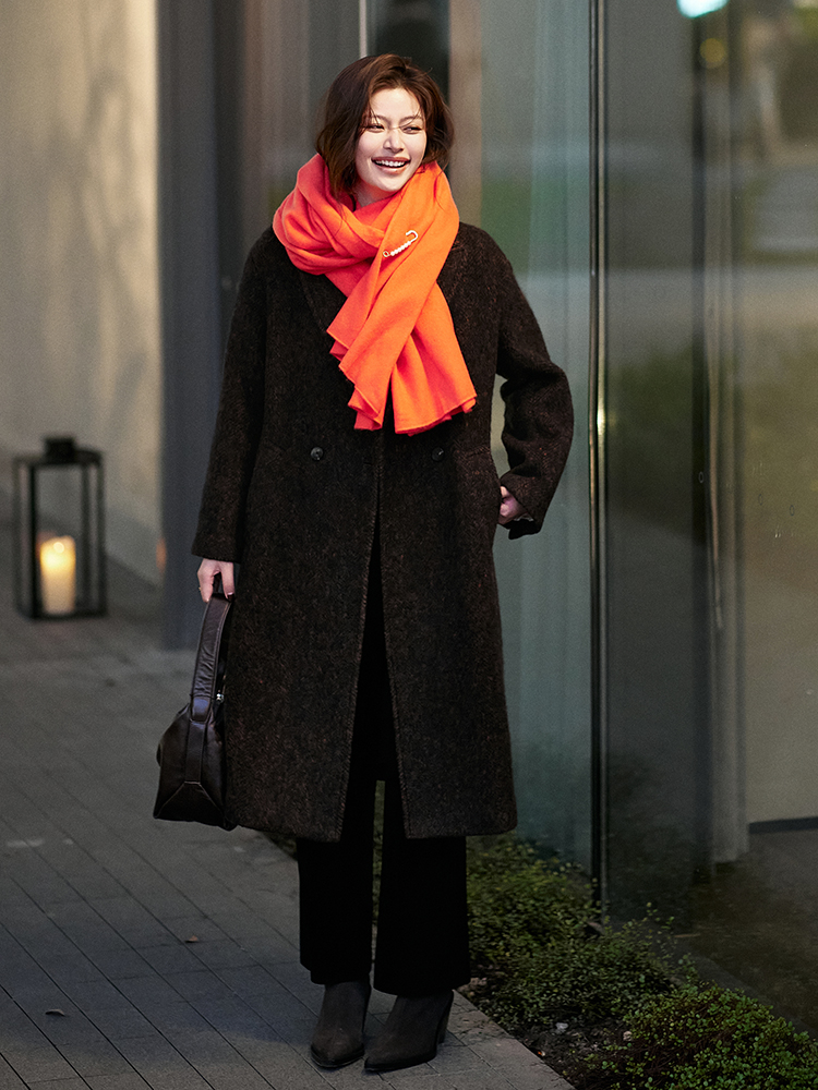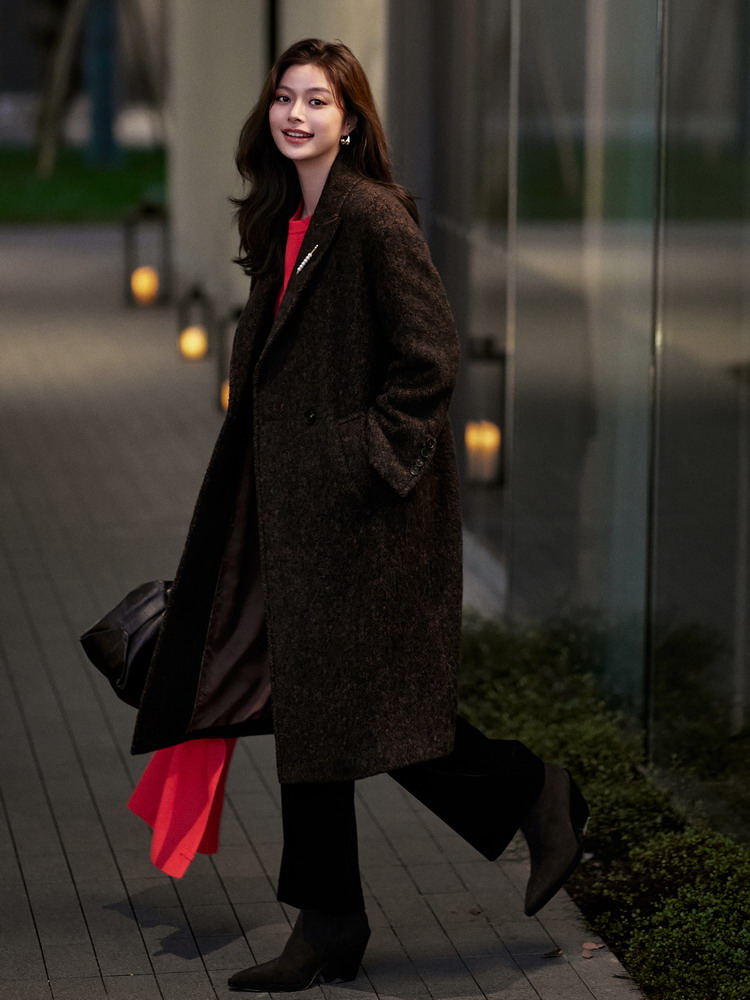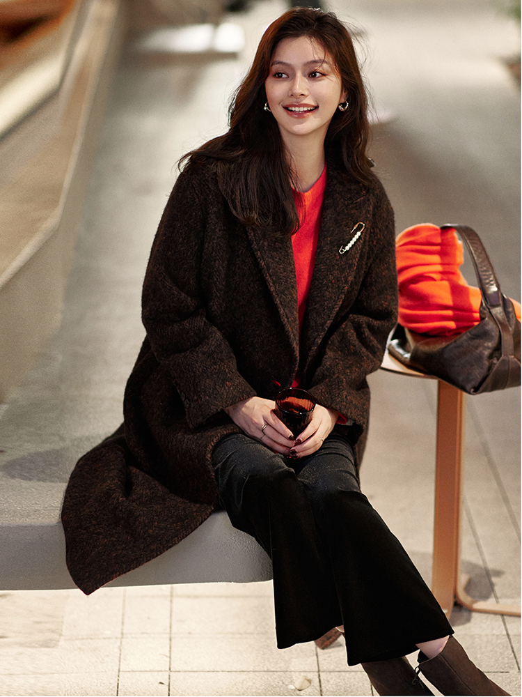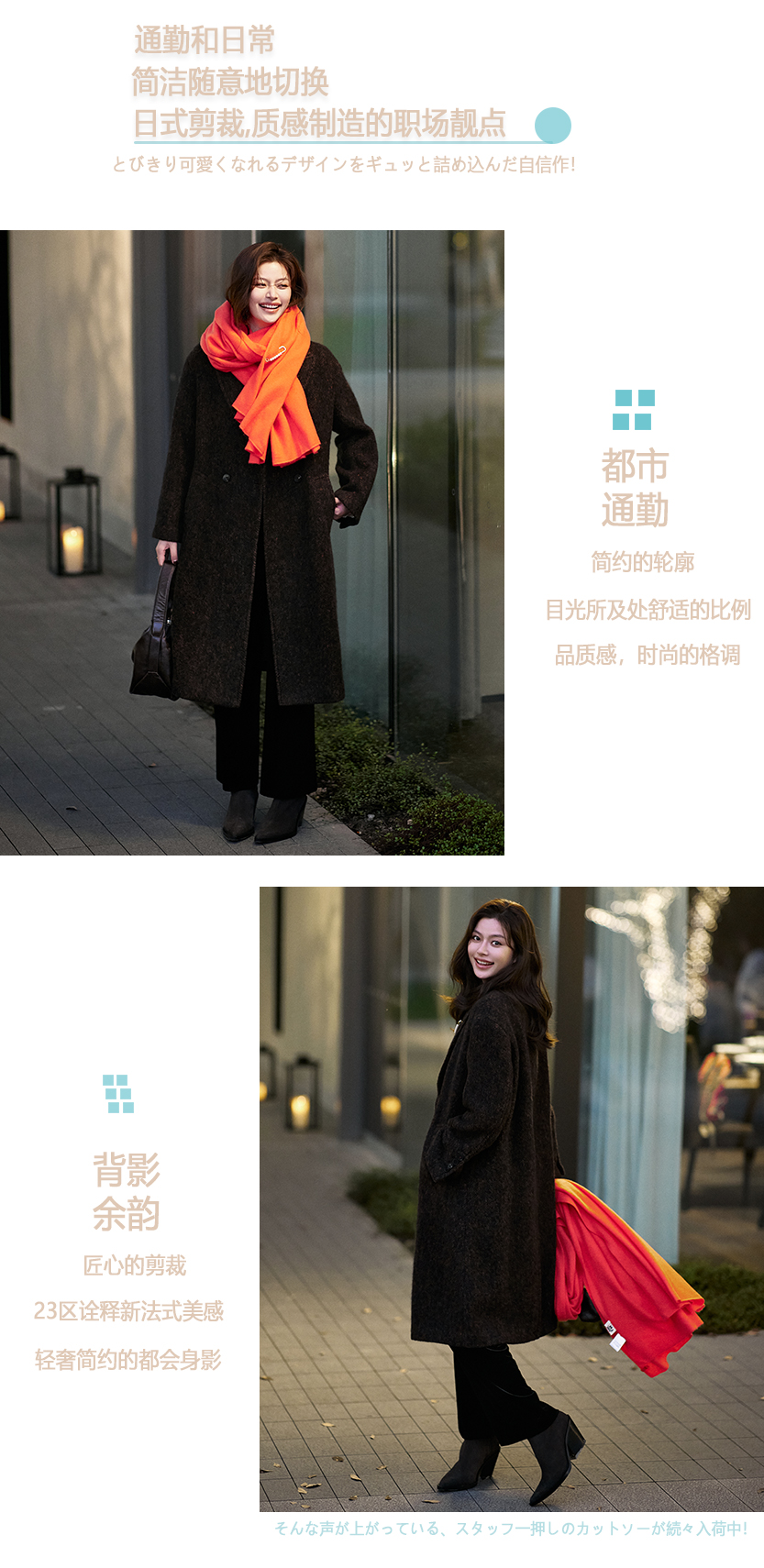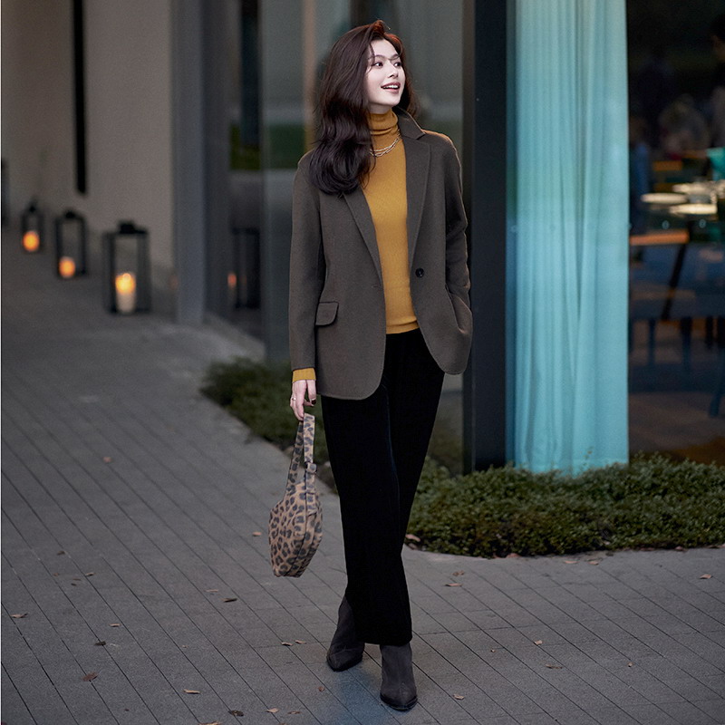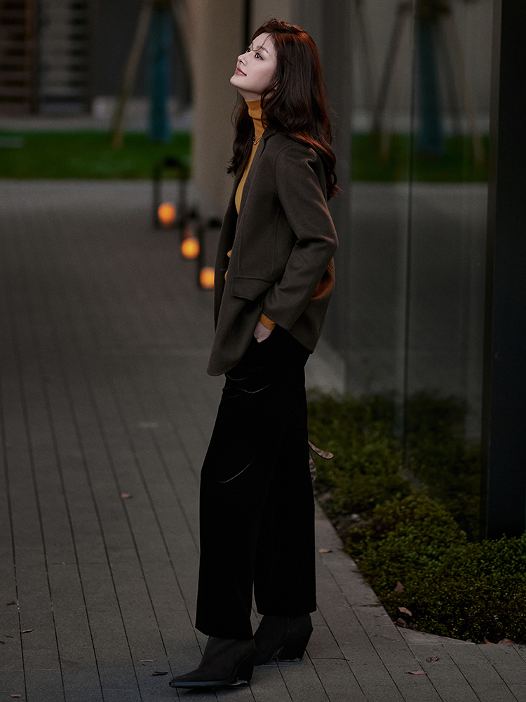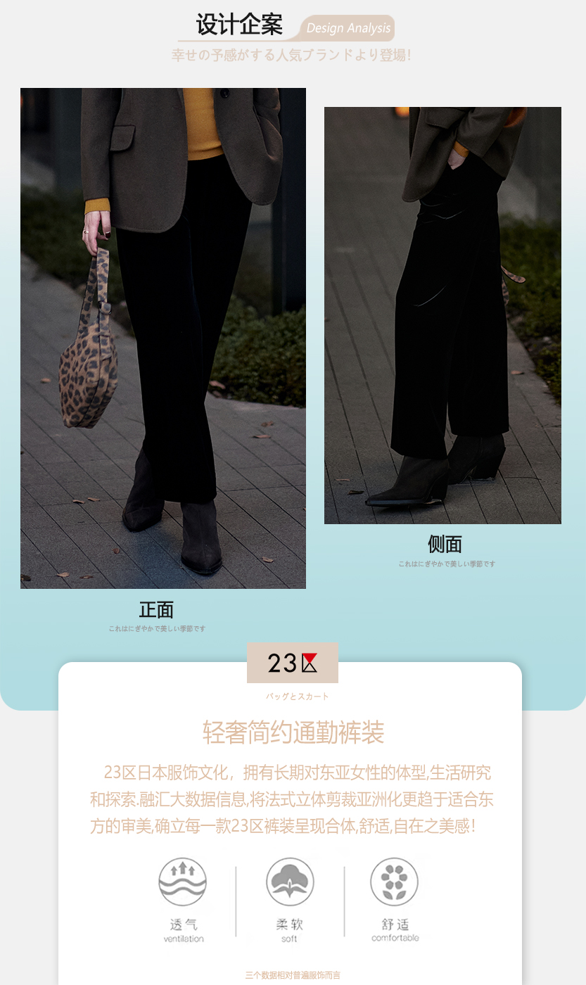 23区日系秋季通勤宽松混纺丝绒松紧腰直筒长裤休闲阔腿裤商场同款