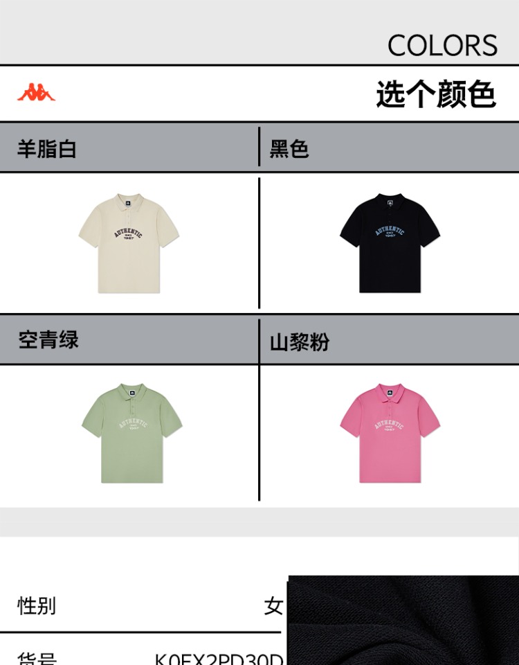 Kappa卡帕短袖POLO2024新款情侣男女夏多色运动半袖休闲学院风T恤K0EX2PD30D