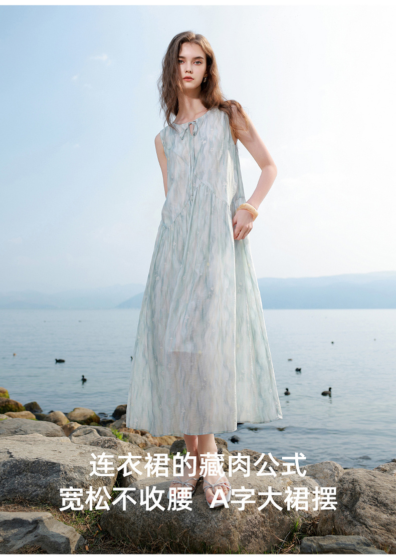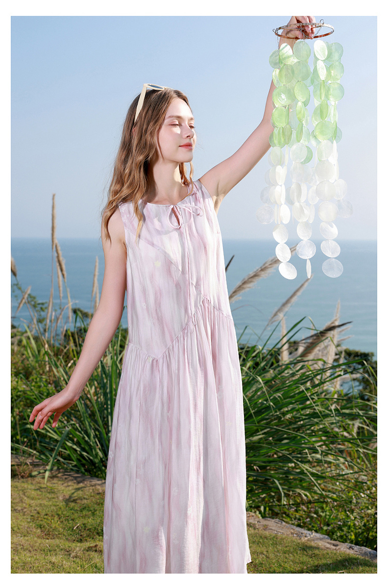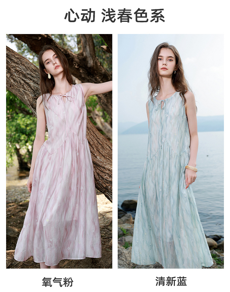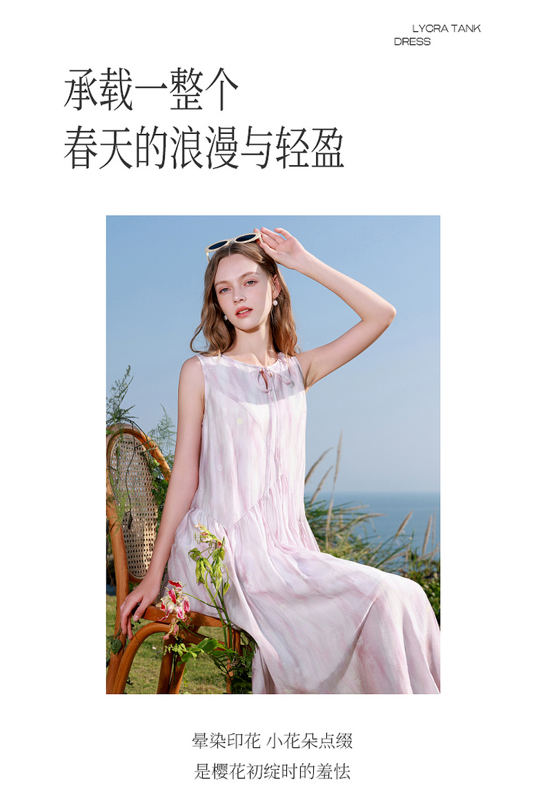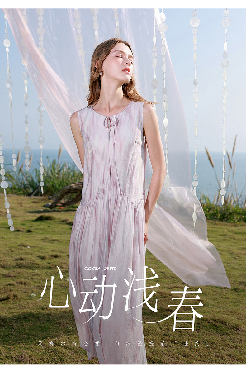 【樱花系列连衣裙】三彩2026夏季新款莱赛尔圆领系带宽松A字长裙M