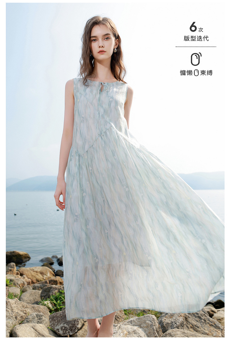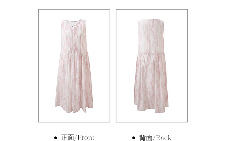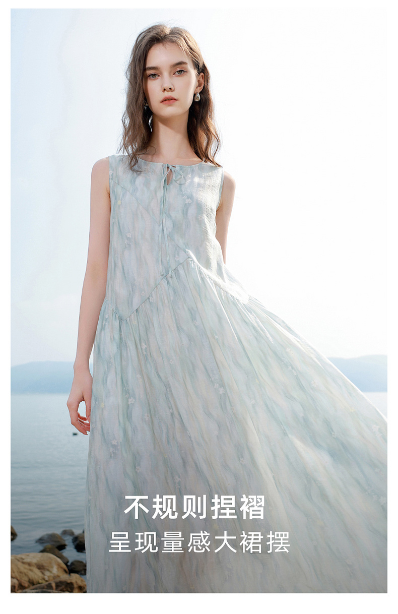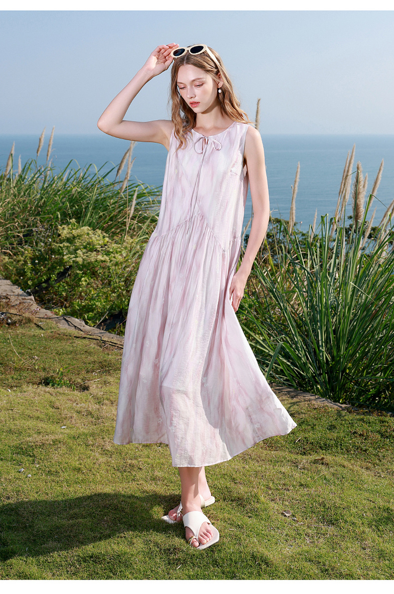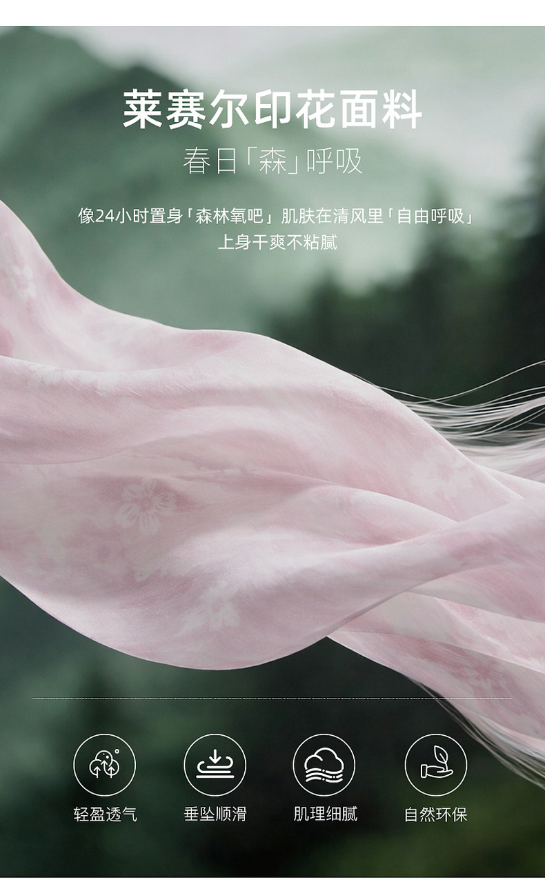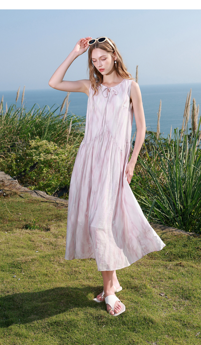 【樱花系列连衣裙】三彩2026夏季新款莱赛尔圆领系带宽松A字长裙M