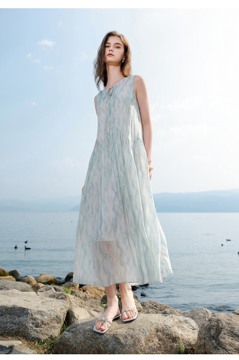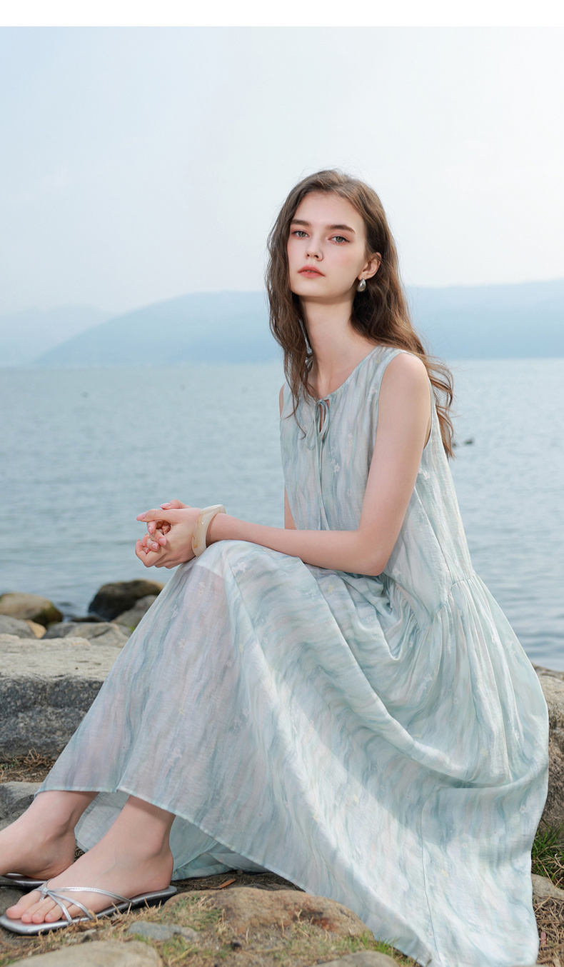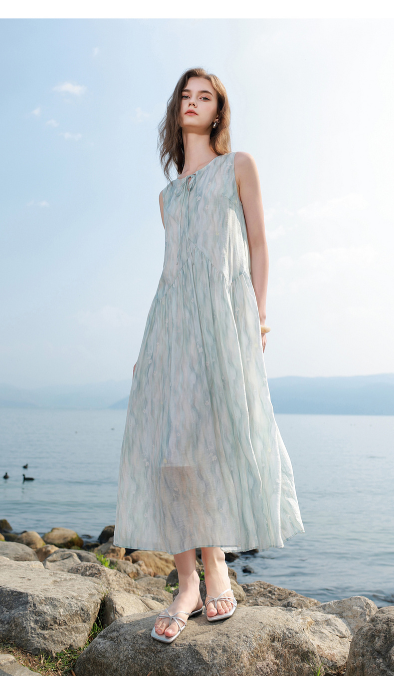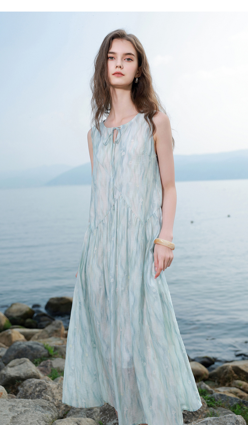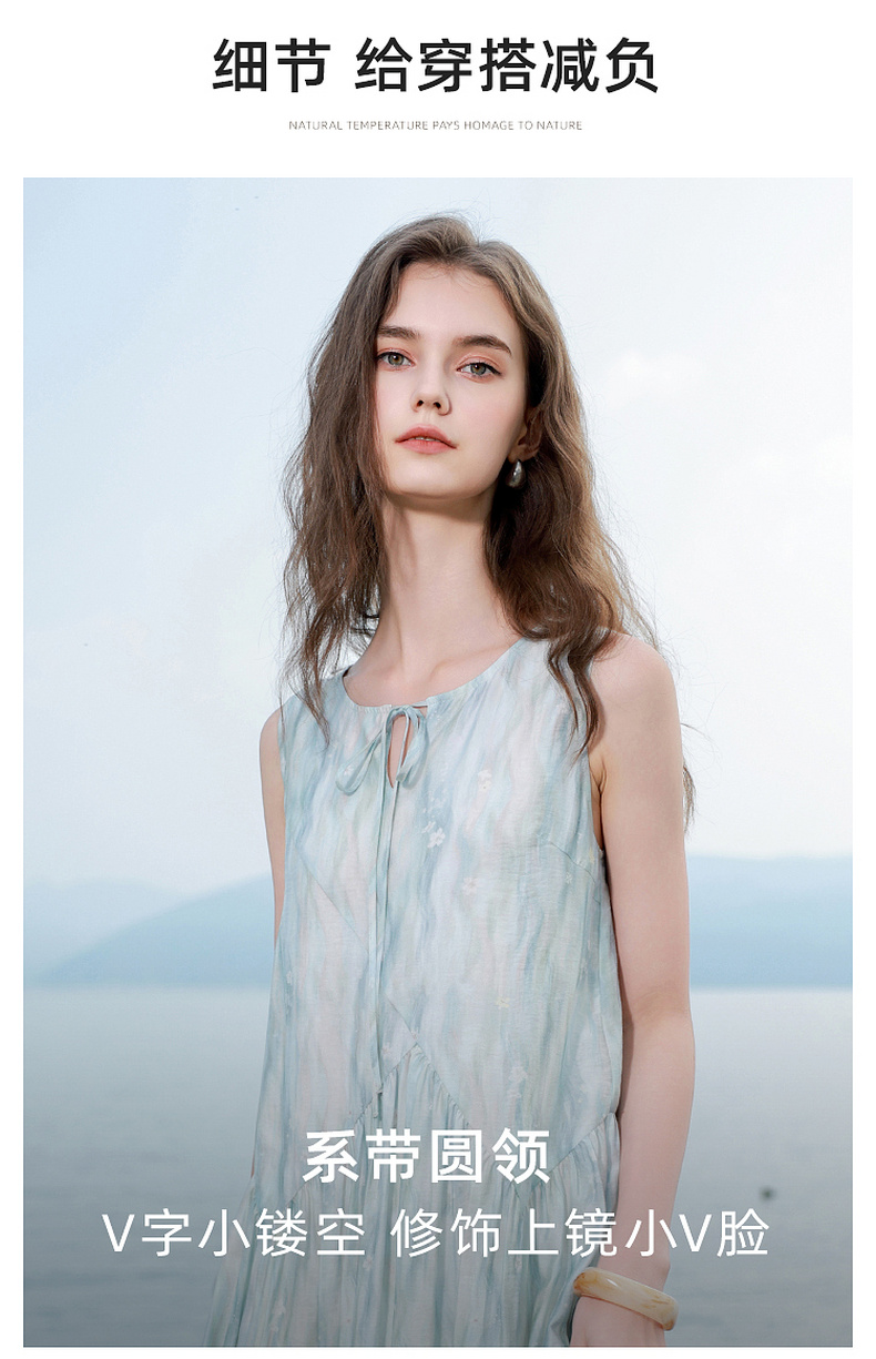 【樱花系列连衣裙】三彩2026夏季新款莱赛尔圆领系带宽松A字长裙M