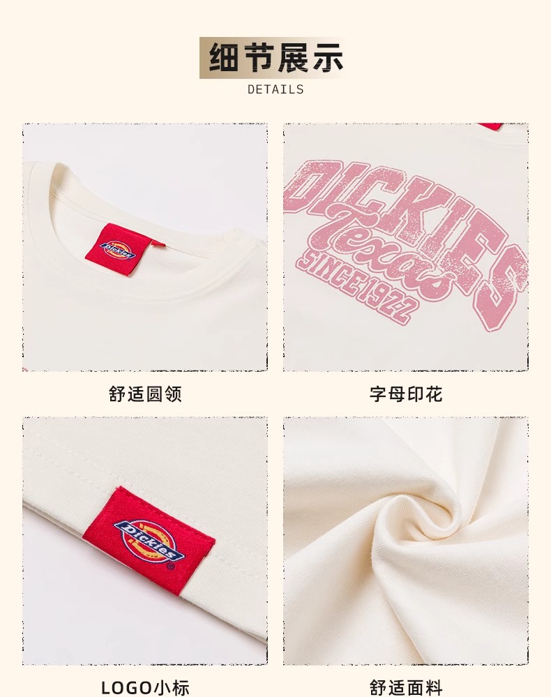 Dickieslogo字母印花纯棉短袖t恤简约休闲宽松男女同款情侣半袖 DK0A88E3