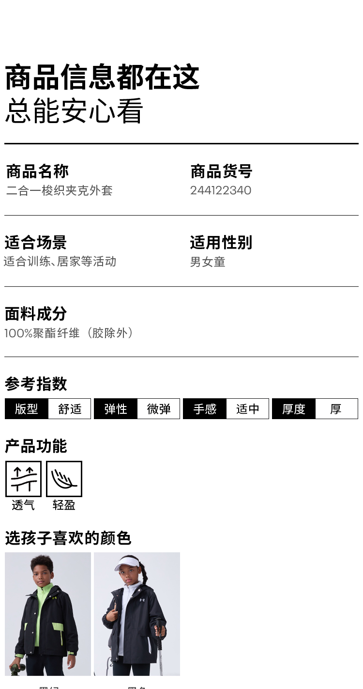 【清仓福利】Under Armour安德玛男女童梭织两件套244122340
