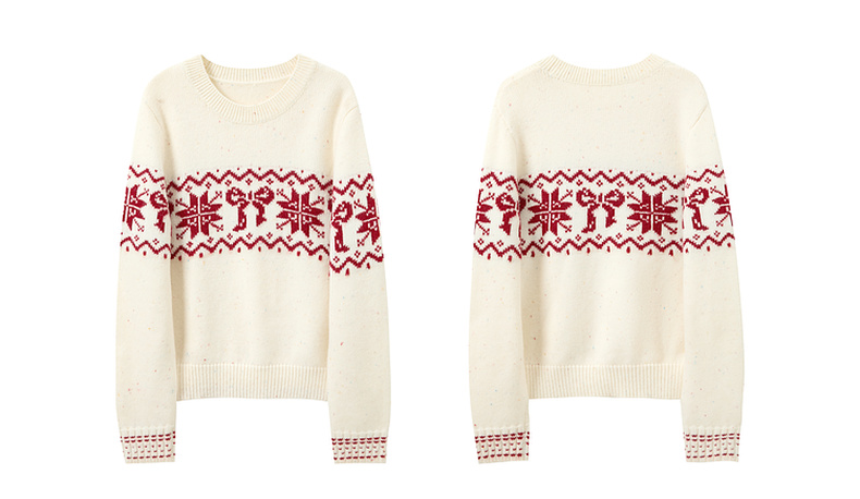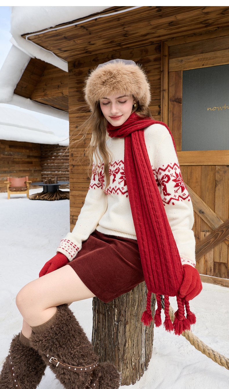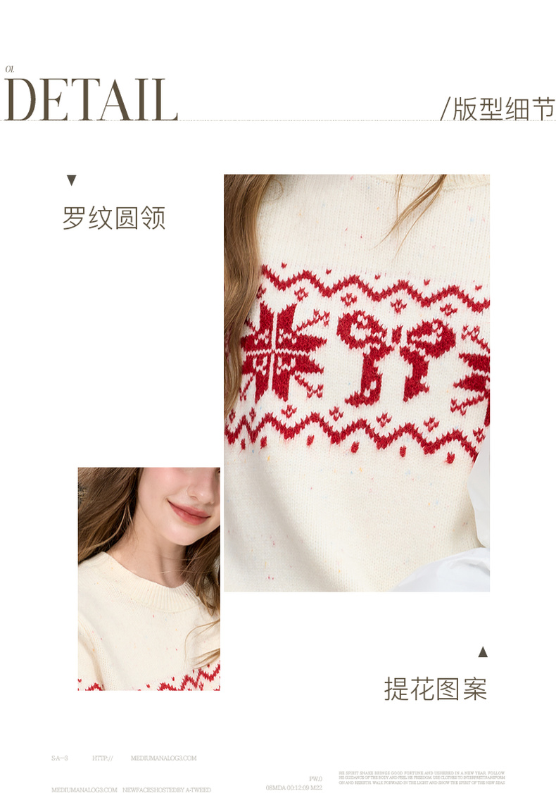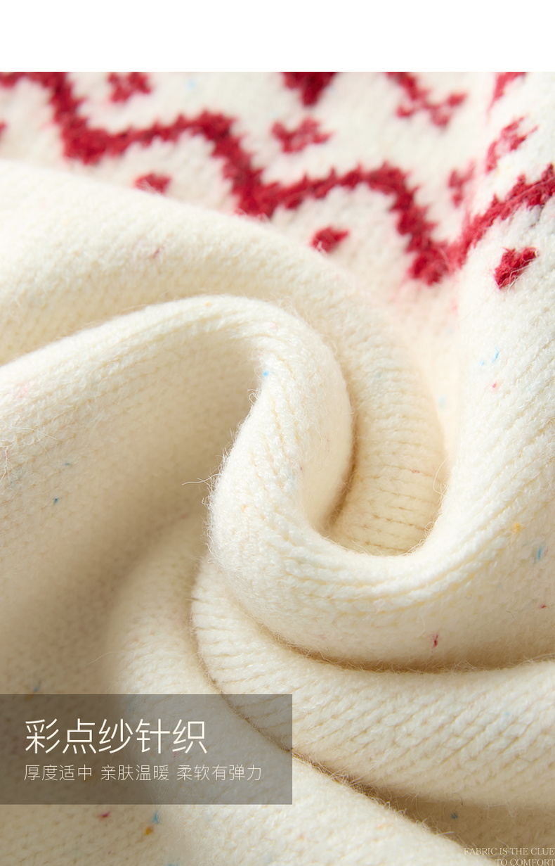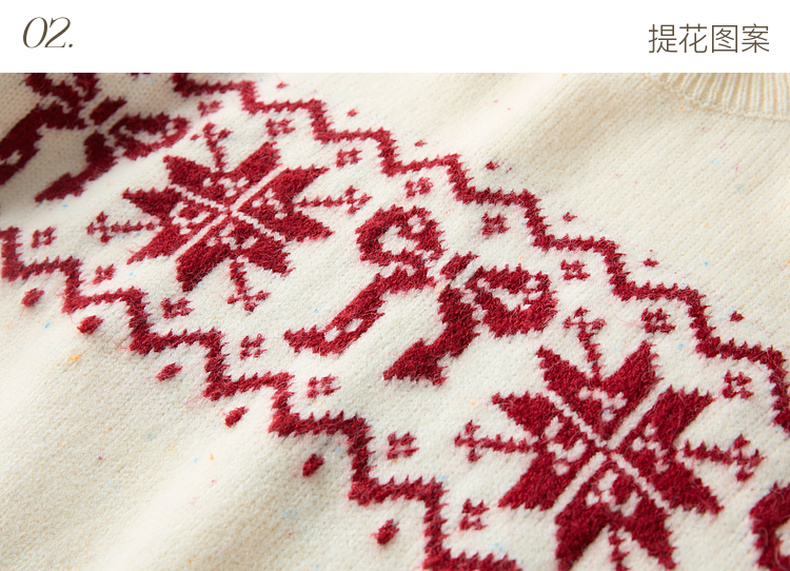 三彩2025冬季新款费尔岛针织衫圆领宽松毛衫套头圣诞M