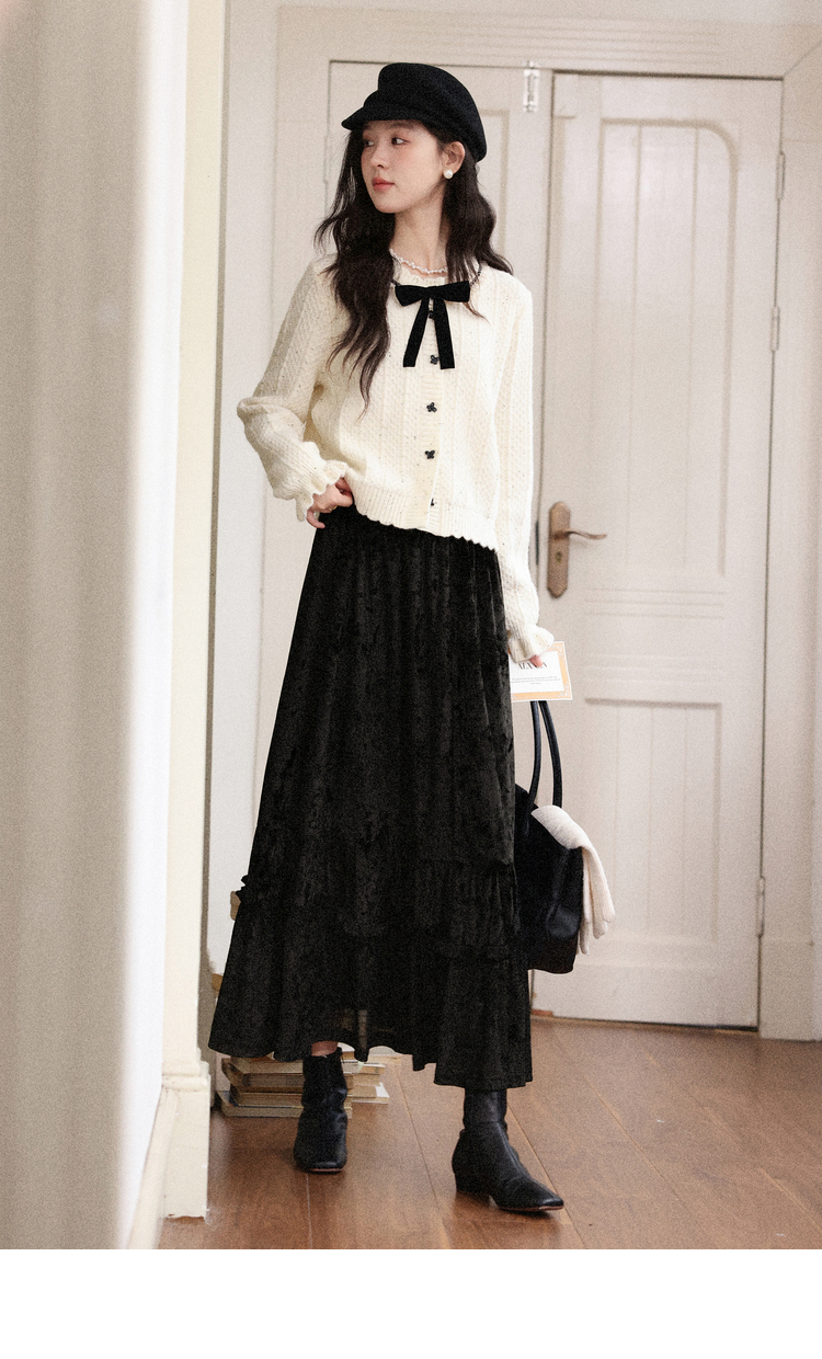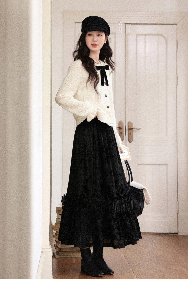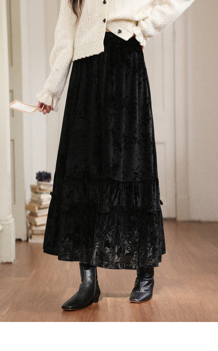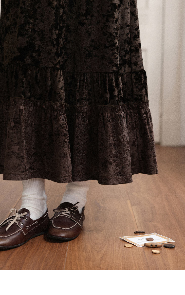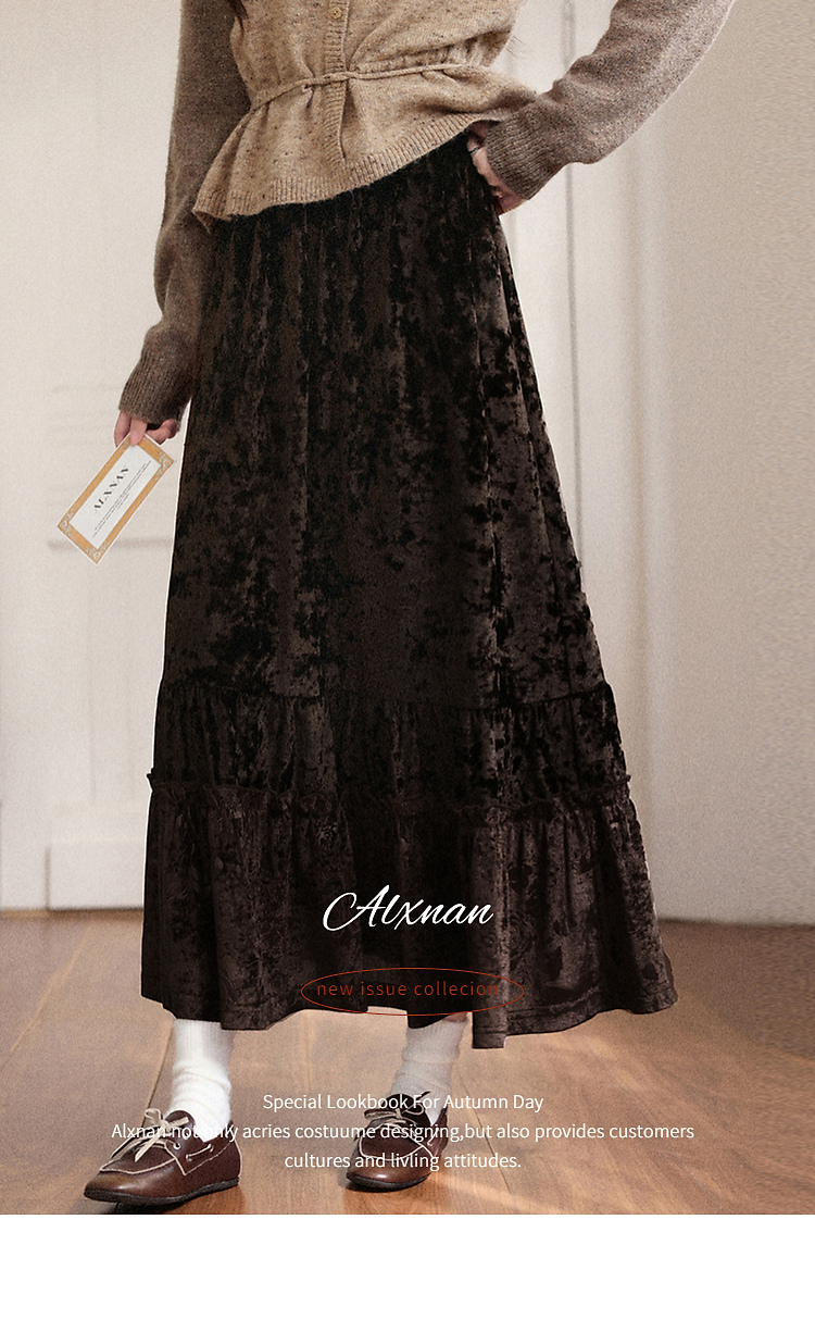 鹿向南「焦糖晚歌」棕色丝绒半身裙女秋冬法式复古中长款A字裙子