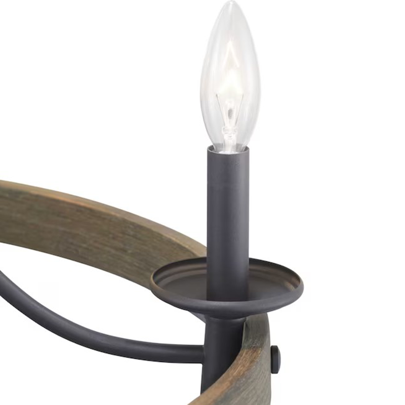 采用纹理金属与手工精饰工艺,仿造出逼真木纹效果,打造经久耐用的现代设计。灯具饰有环形木纹饰圈与螺栓固定板条,搭配复古灯泡更添韵味。枝形吊灯以一道宽幅木纹圈为主视觉,卫浴灯具则呈现自然灵感的灯光设计。