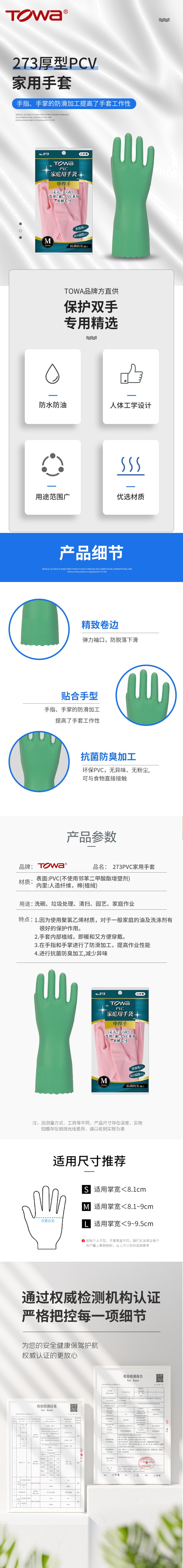 日本进口TOWA牌厚型PVC家用手套 【任选三双仅51.8元,到手单价仅需约17.2元/双】