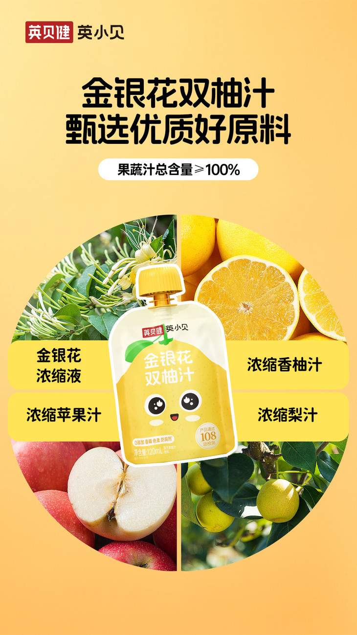⬇️妈妈们都在囤,是真的优秀! 🍸英小贝金银花双柚汁,100%果蔬汁含量!升级双柚结合,配料是纯果汁和金银花浓缩液😋 🍼英小贝益生元山楂汁,升级了益生菌发酵山楂浆,更利于儿童消化,“积食”886👋🏻 🍹英小贝胡萝卜汁,则增加了叶黄素酯,专家认定的眼黄金,护眼力大大升级
