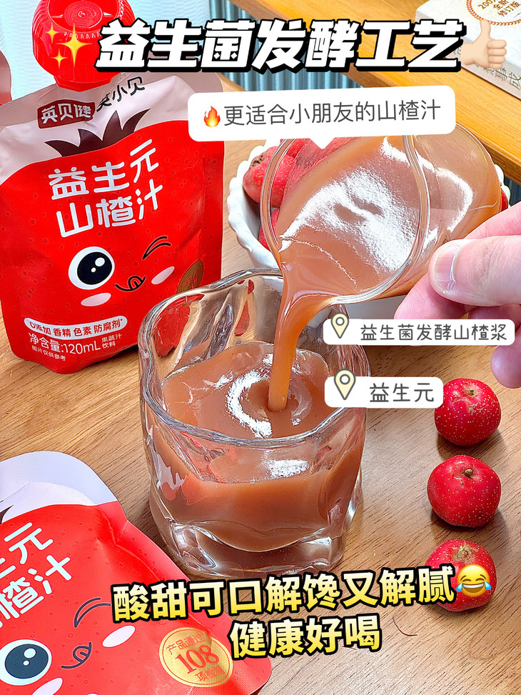 宝贝食欲不振,不好好吃饭❌ 大便干、上火口臭、不爱喝水 妈妈们可以给宝贝喝一袋益生元山楂汁, 酸酸甜甜的,口感很好,孩子们都爱喝!