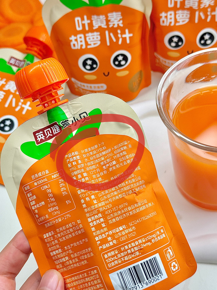 喝胡萝卜汁养眼🥰从娃娃抓起! 成分纯粹干净!!妈妈们真的很放心!天然“蓝光小护盾”每天1-2袋轻松护眼‼ 给孩子从小养一双清亮有神的大眼👁 普通产品100ml,英小贝120ml/袋 味道孩子喜欢🤣妈妈们放心囤起来~~