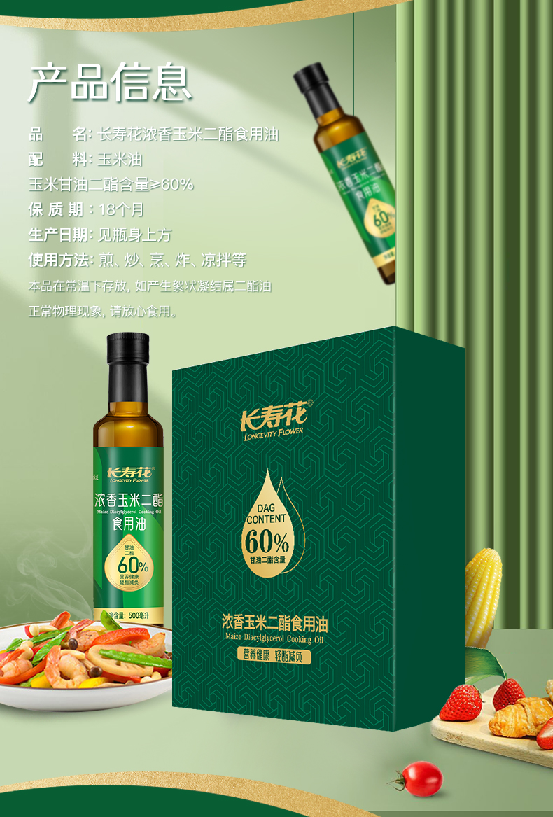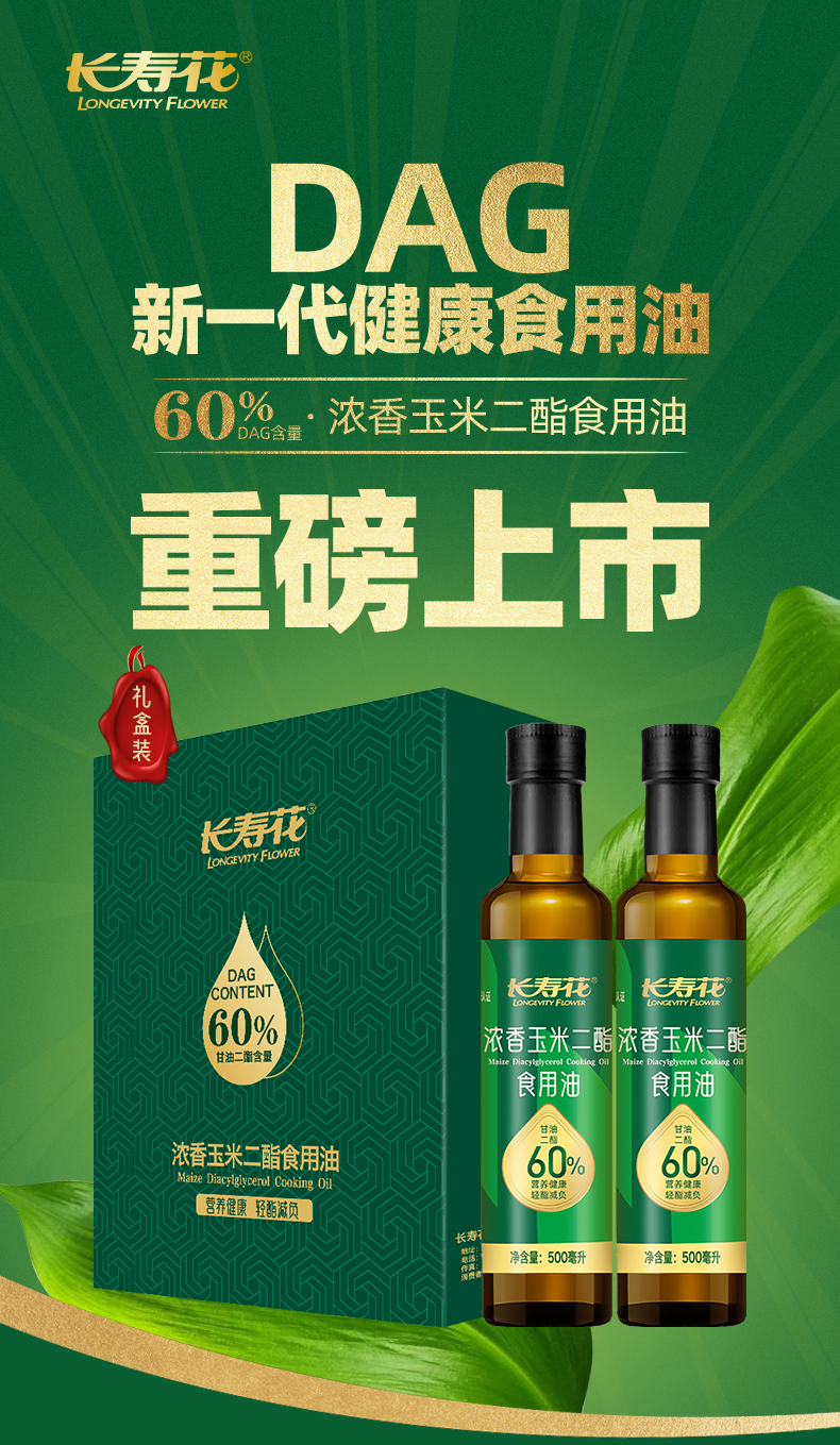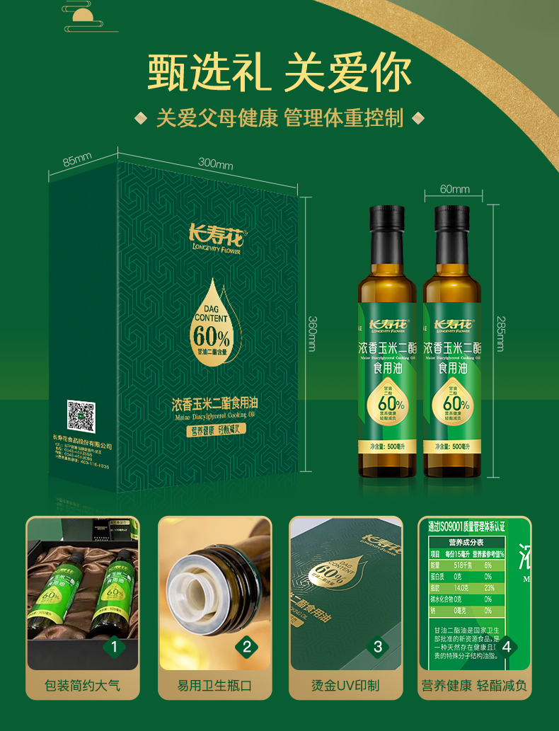 长寿花60%浓香玉米二酯食用油500ml*2礼盒轻酯甘油二酯食用油60%DAG含量