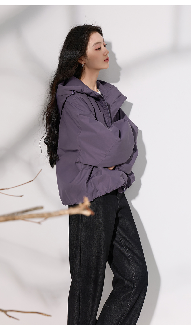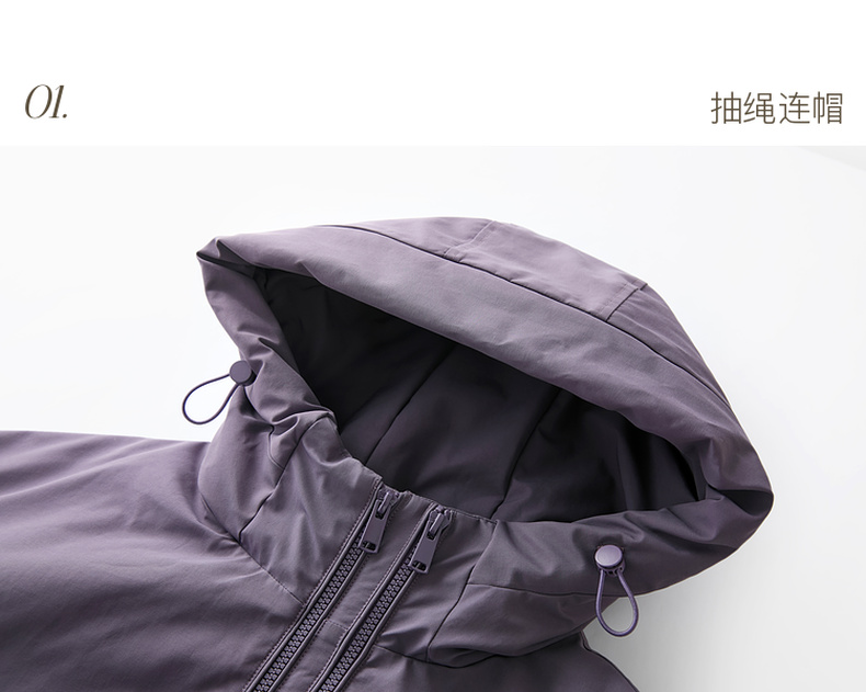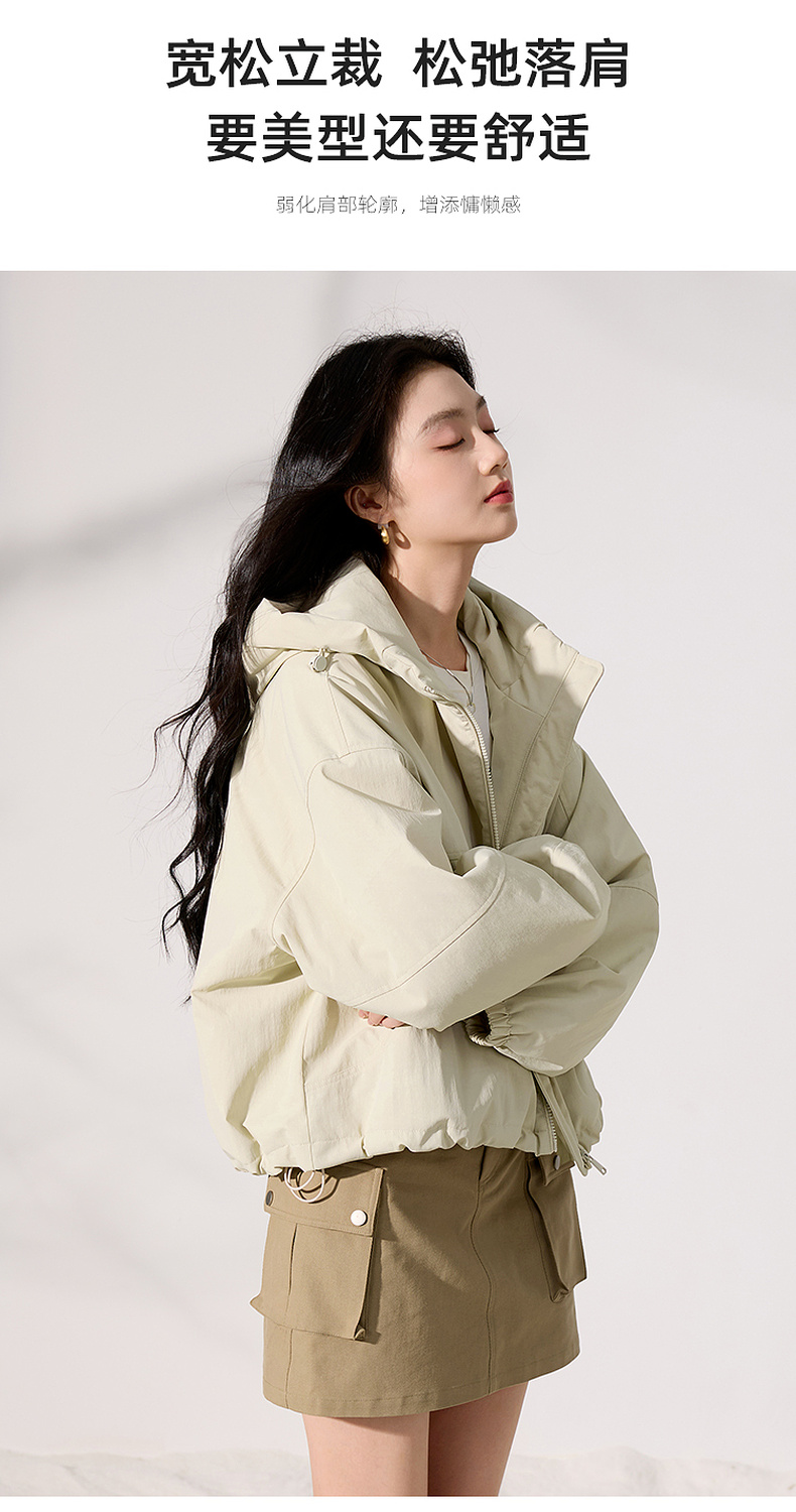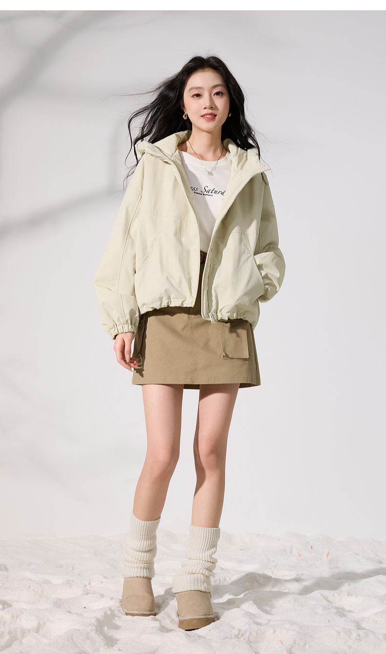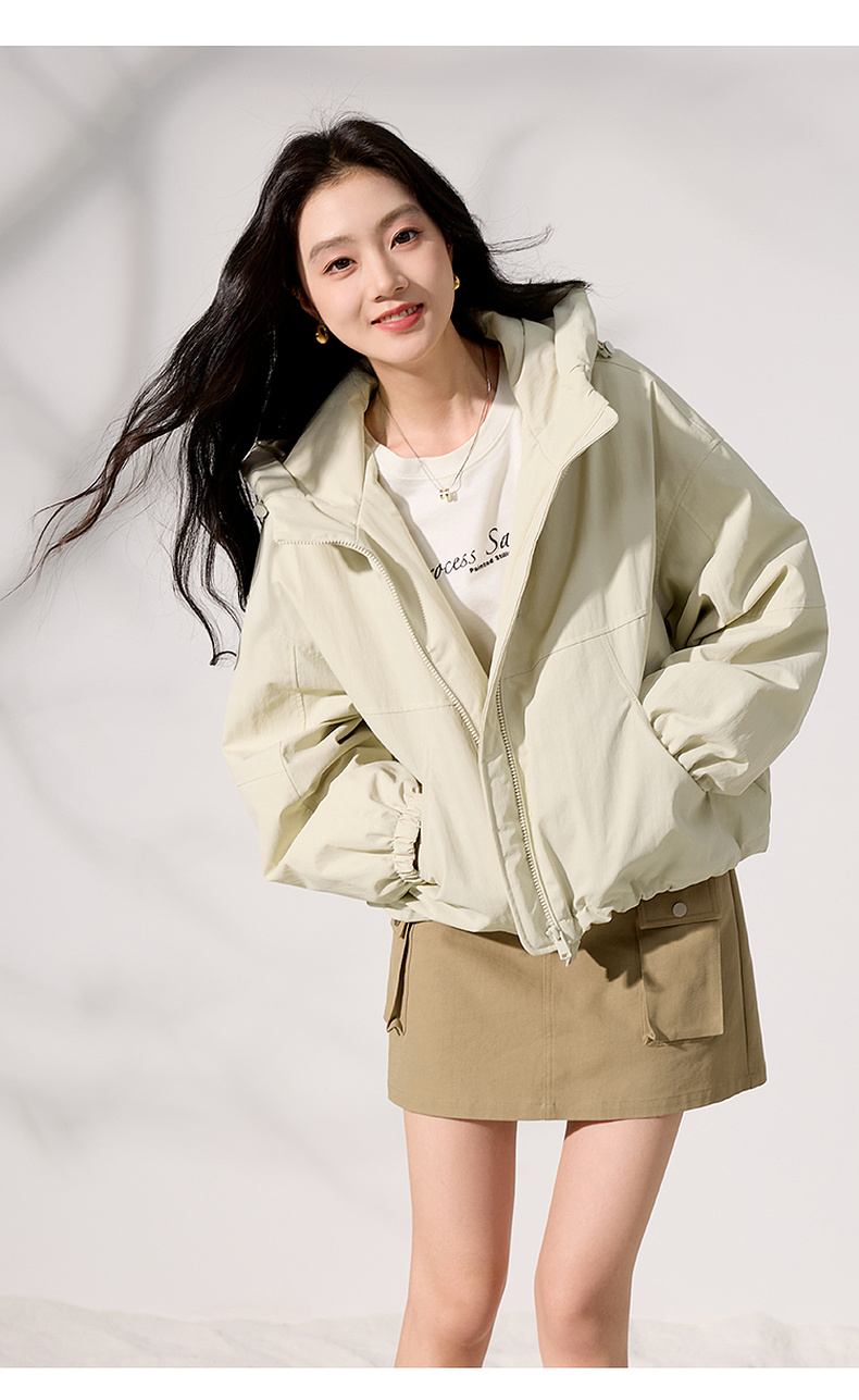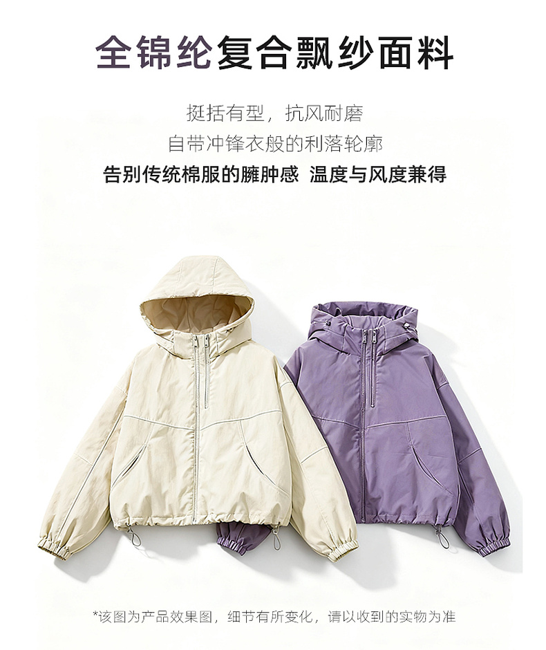 三彩2025冬季新款连帽棉服宽松棉衣休闲简约保暖夹棉外套短款S