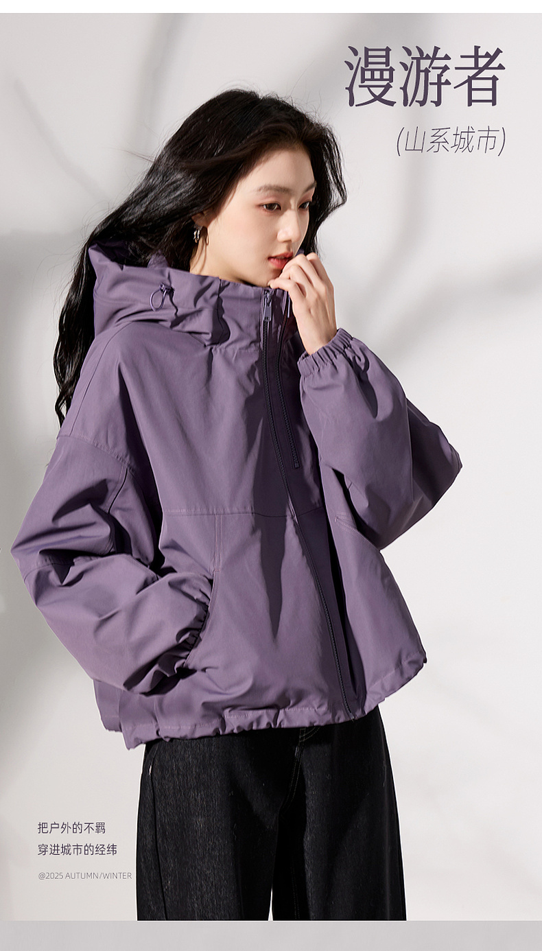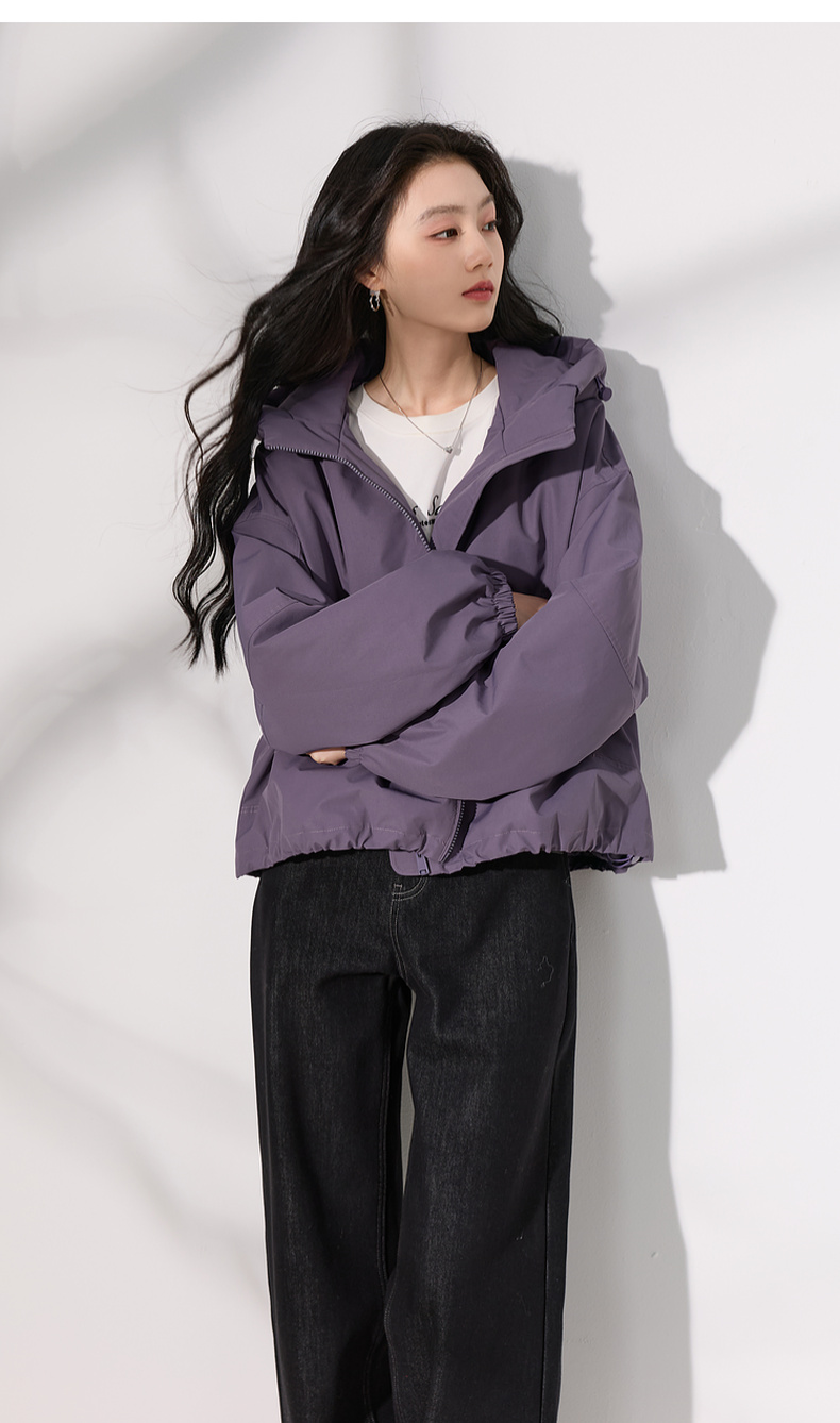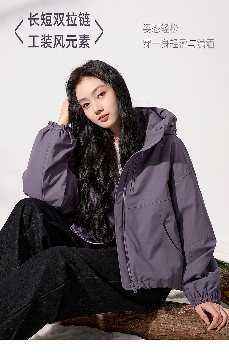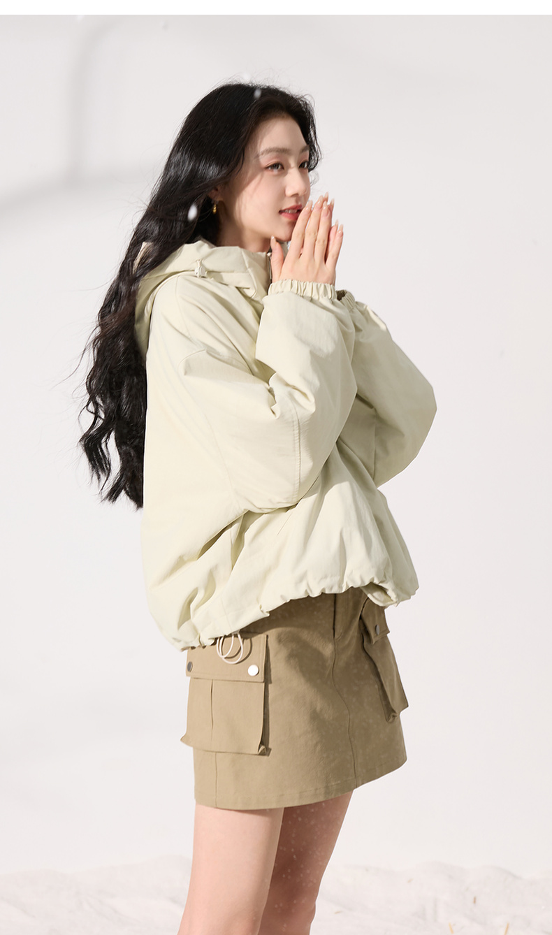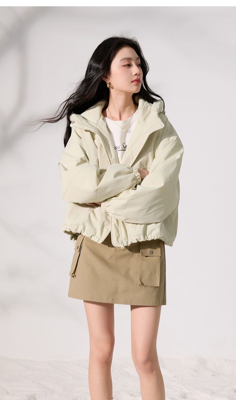 三彩2025冬季新款连帽棉服宽松棉衣休闲简约保暖夹棉外套短款S
