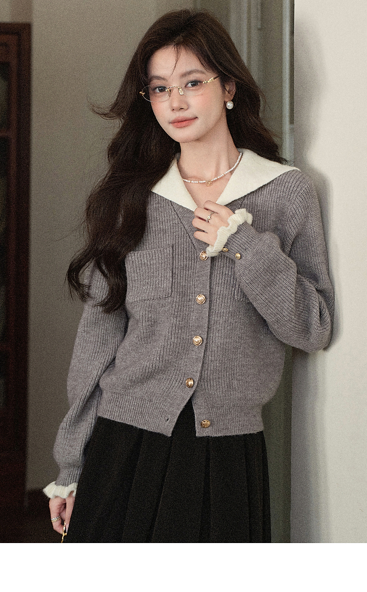 鹿向南「冬日旅途」假两件灰色针织衫毛衣开衫初女秋显瘦长袖上衣QJD00608