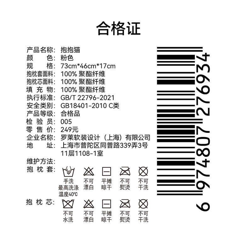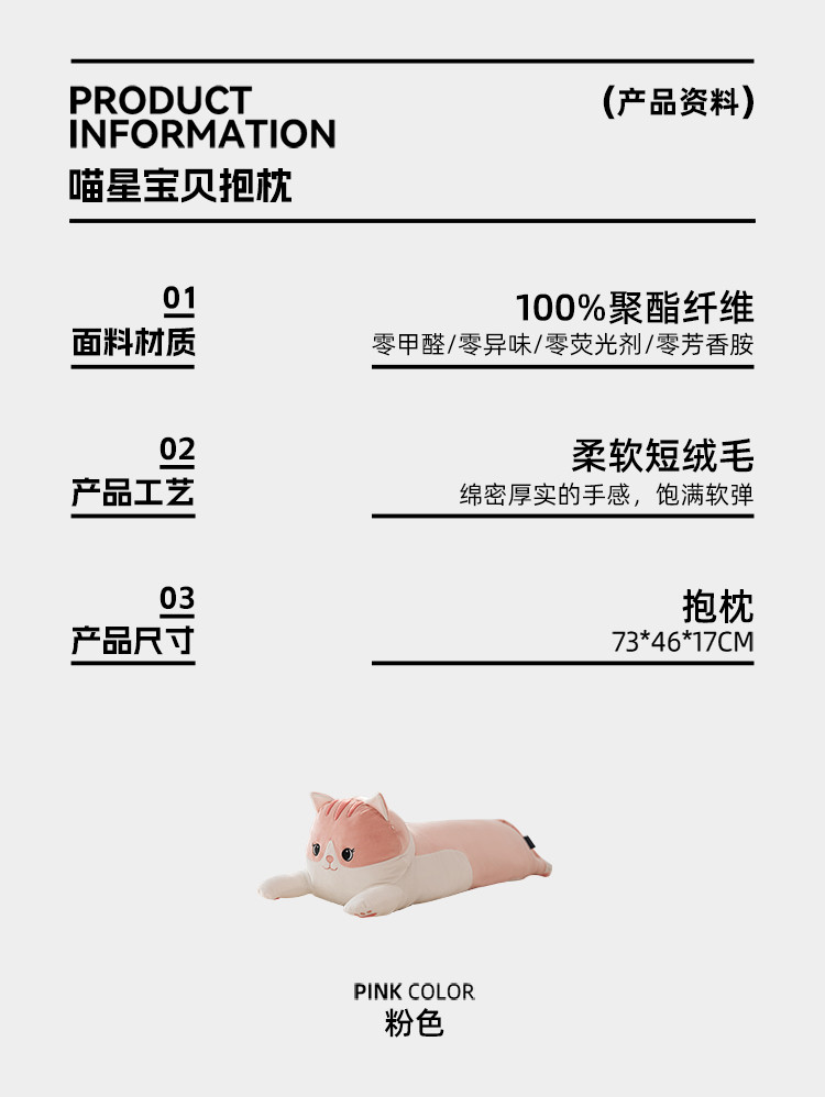 罗莱软装 抱抱猫抱枕 73cm*46cm*17cm