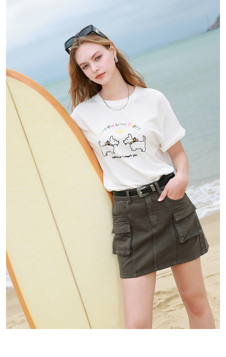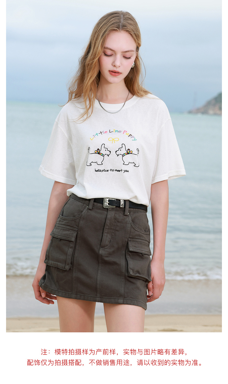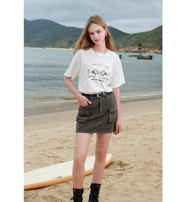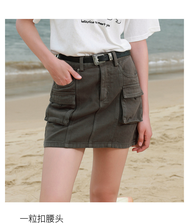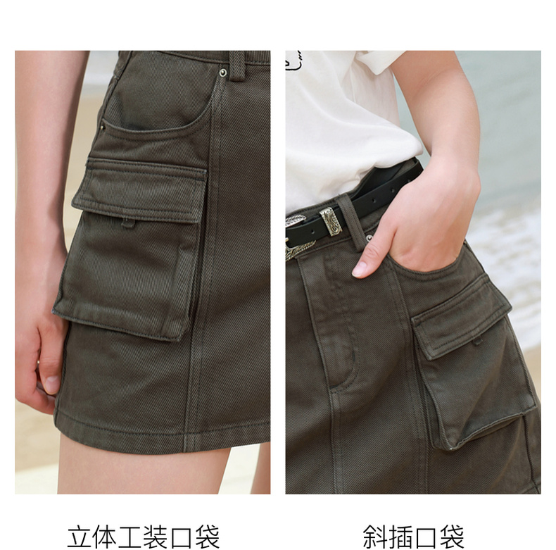 三彩2025夏季新款工装牛仔裙口袋半身裙休闲短裙休闲时尚M