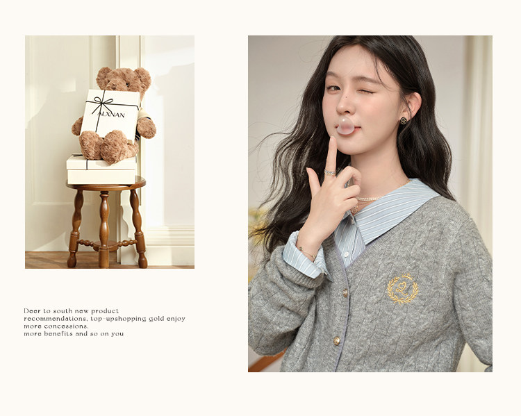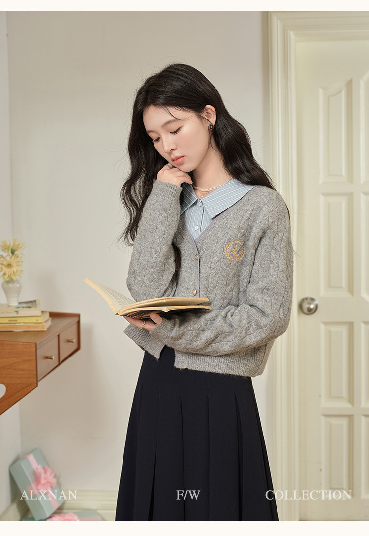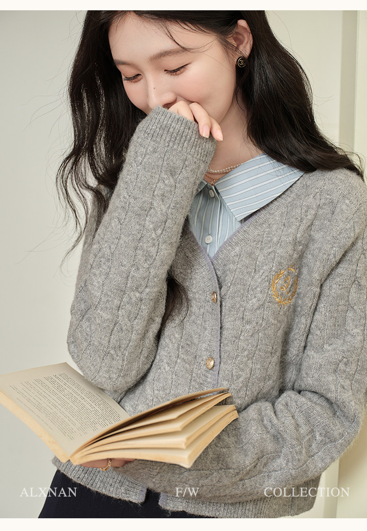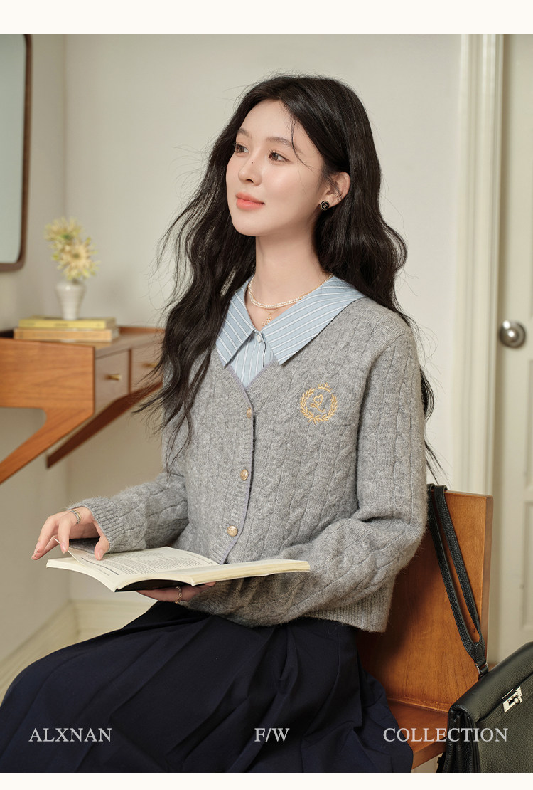 鹿向南「布鲁克林街道」学院风灰色毛针织开衫秋冬新款外搭上衣女