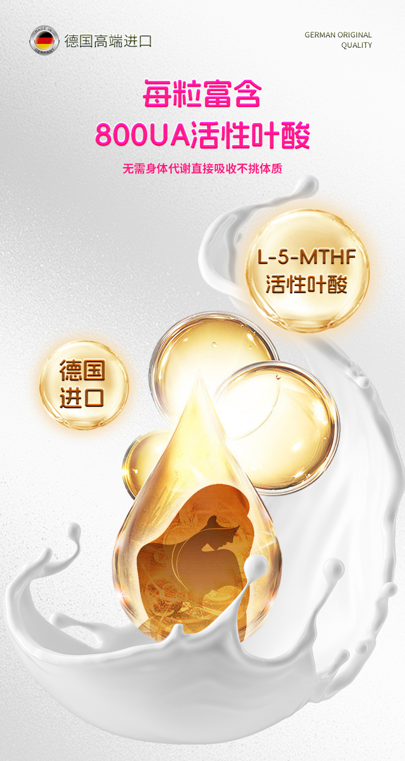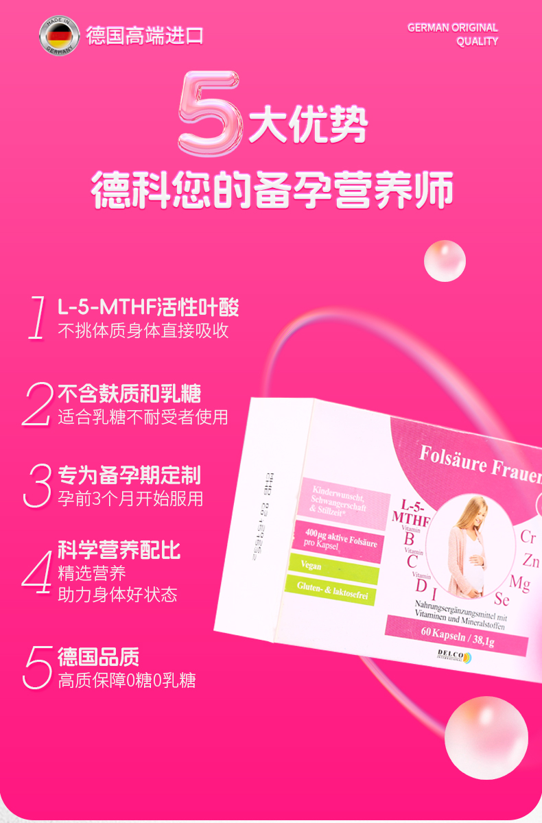 【DelcoInternational】女性活性叶酸备片孕前女呵护孕妇专用复合维生素备孕叶酸 胶囊60粒【盒装】