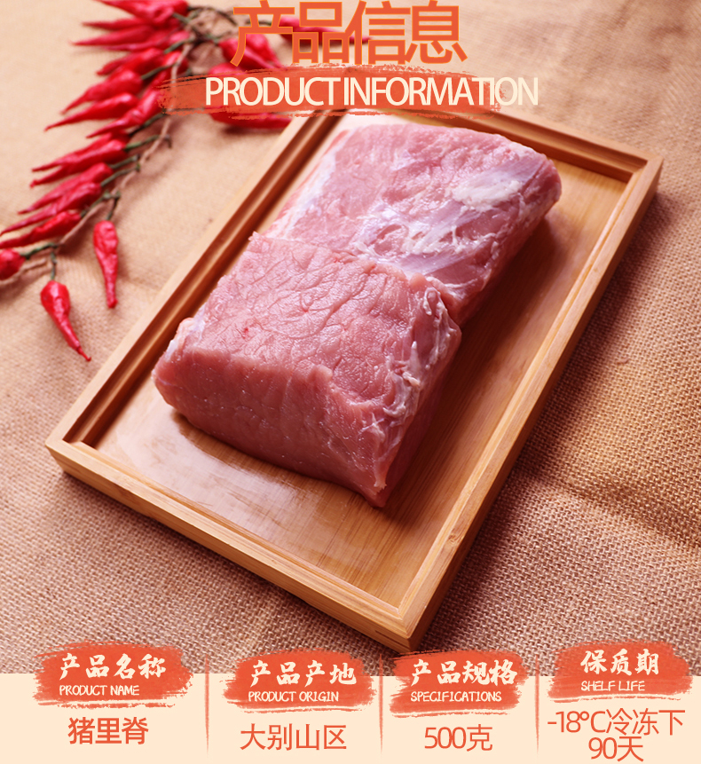 【农家散养】王明公 大别山食用散养土猪里脊 4斤(1000g*2袋) 冰鲜包装新鲜到家