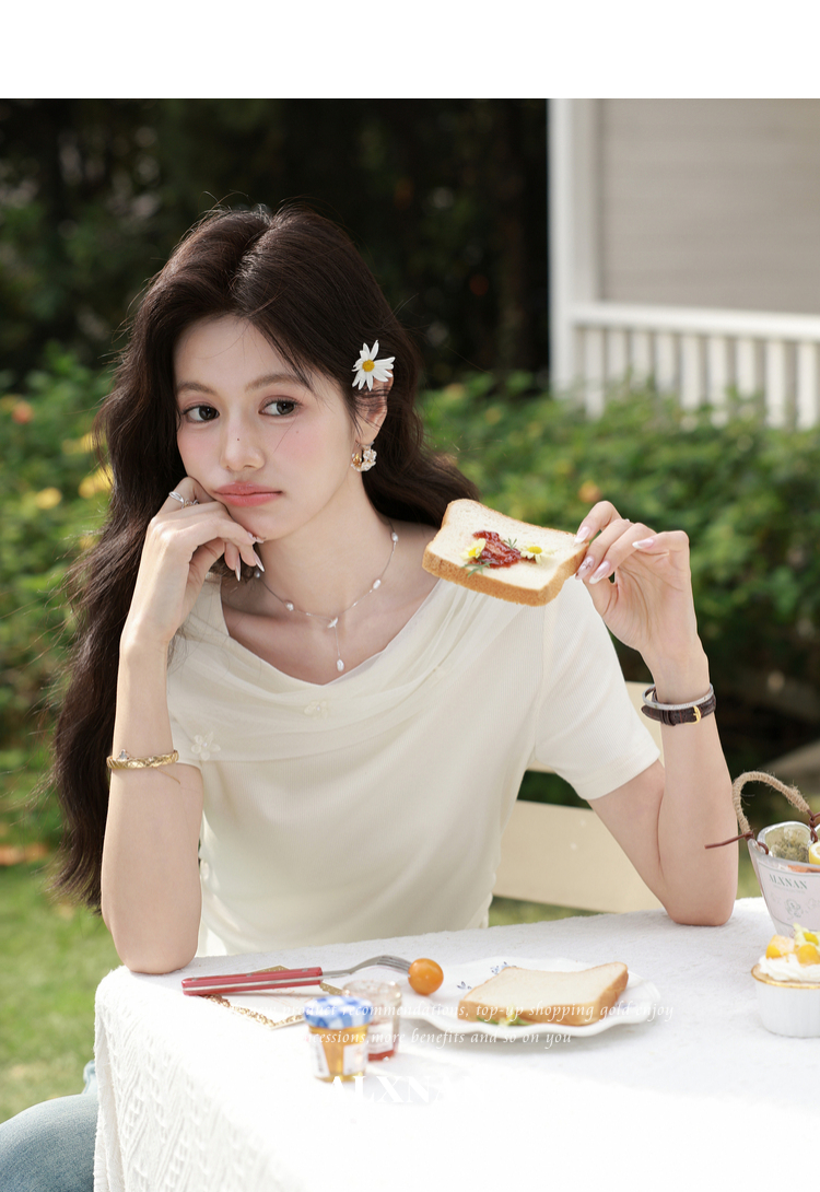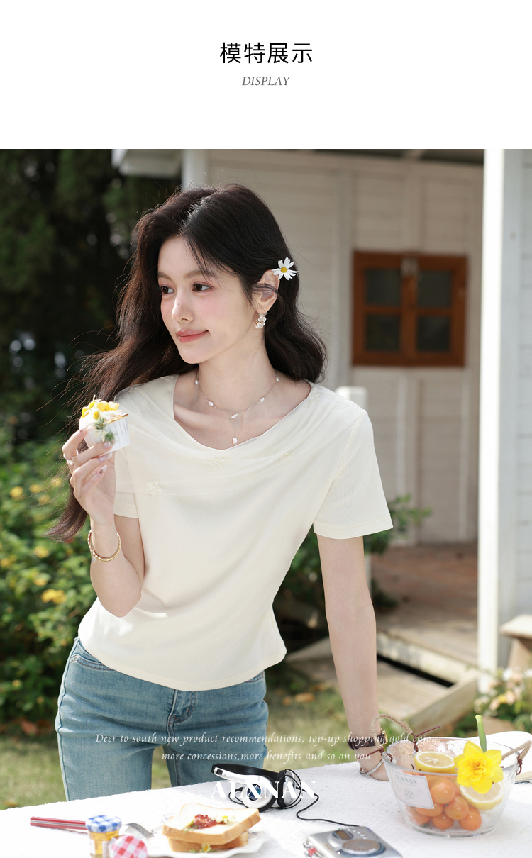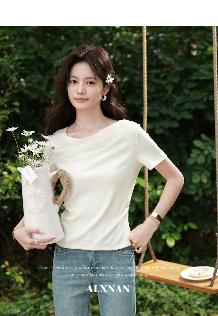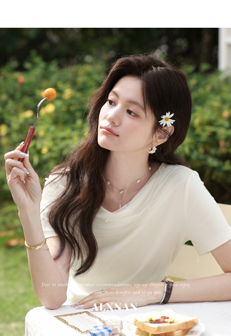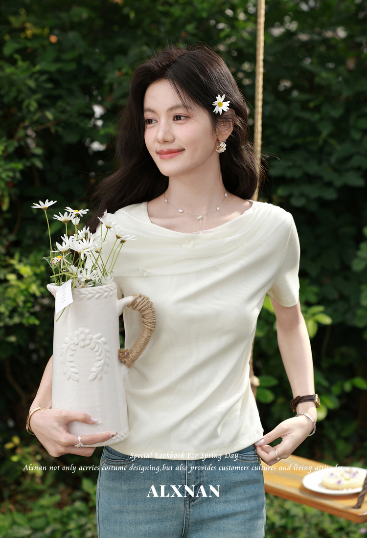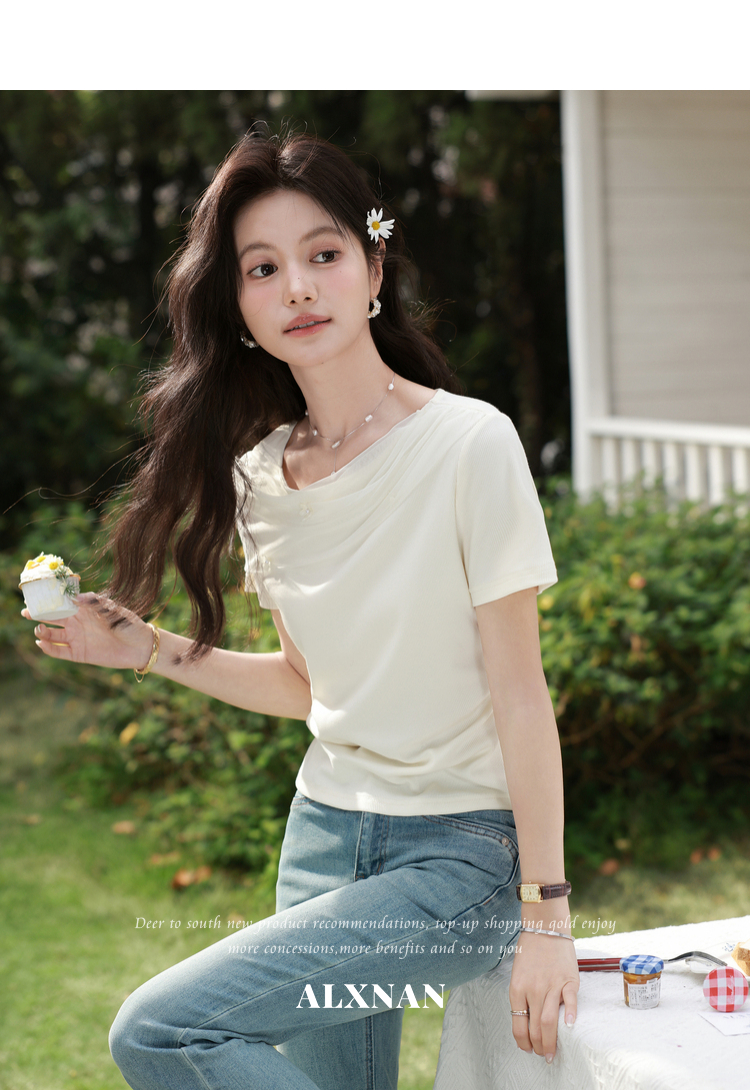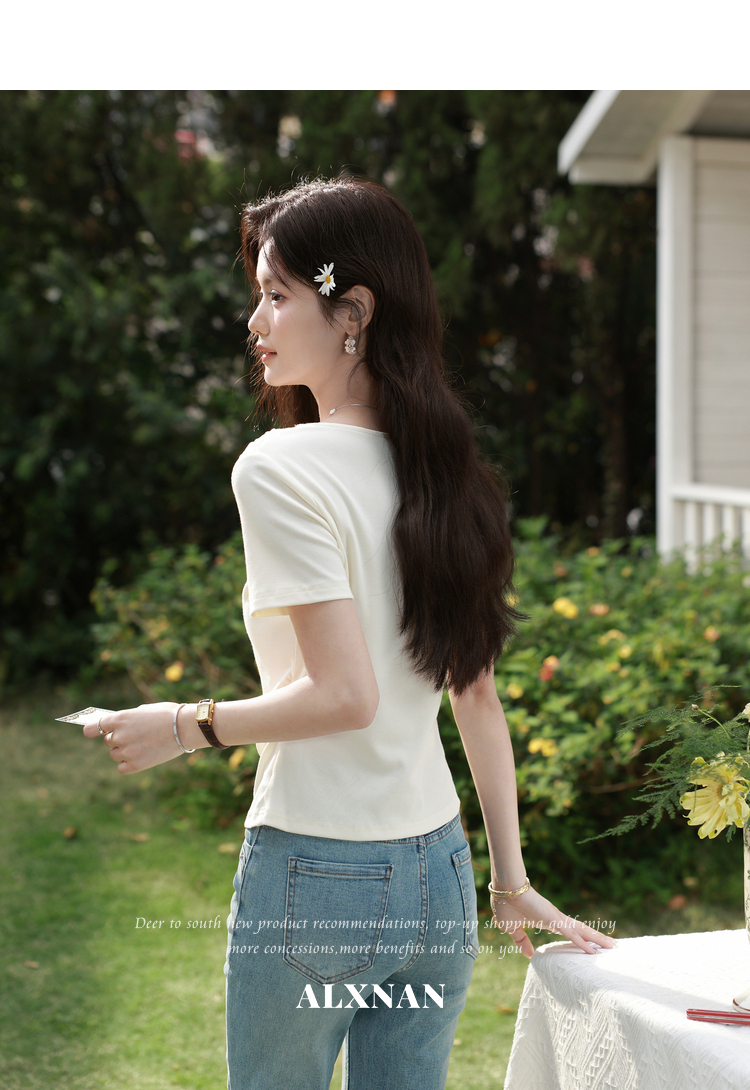 鹿向南【0331/20:00新品前1小时7折限量100件】简约杏色设计感T恤