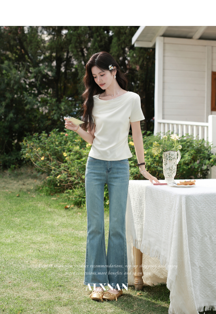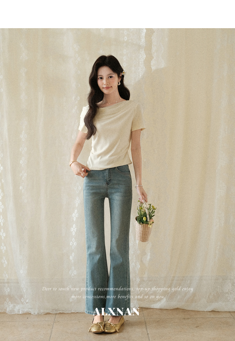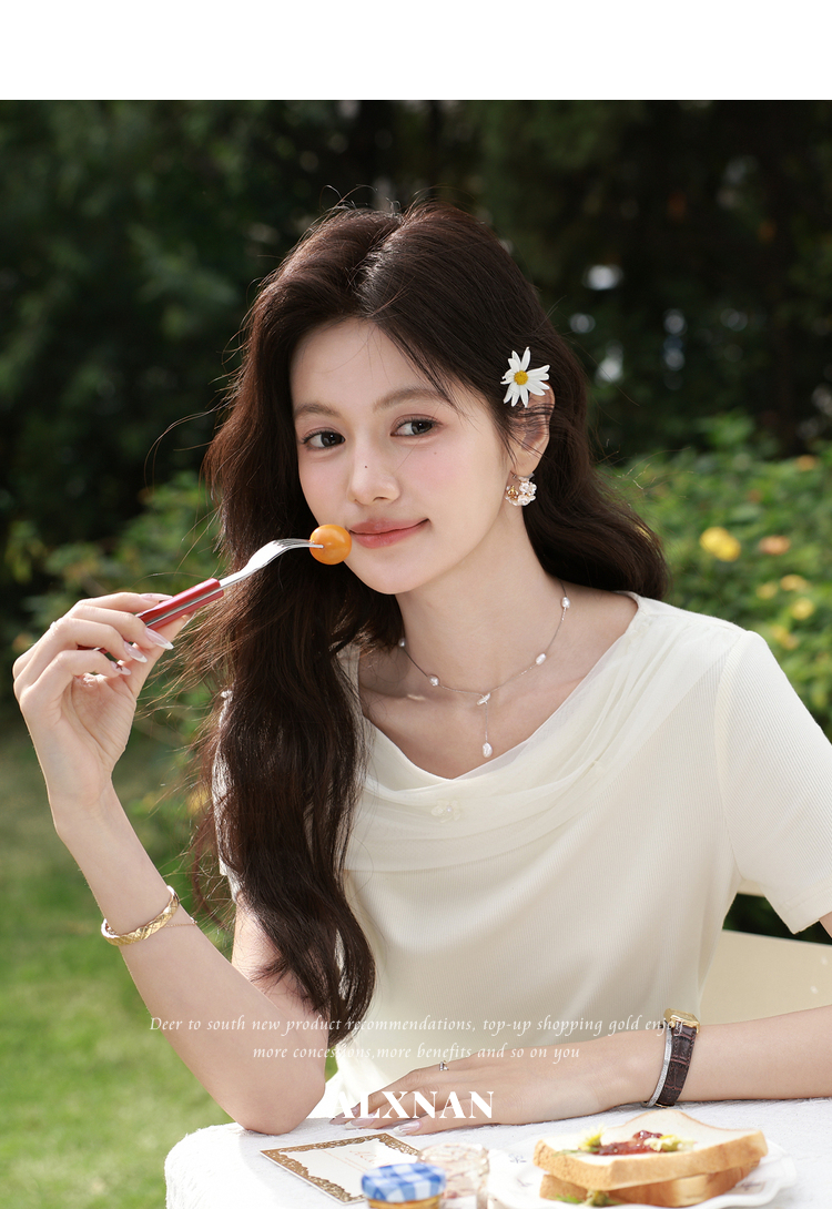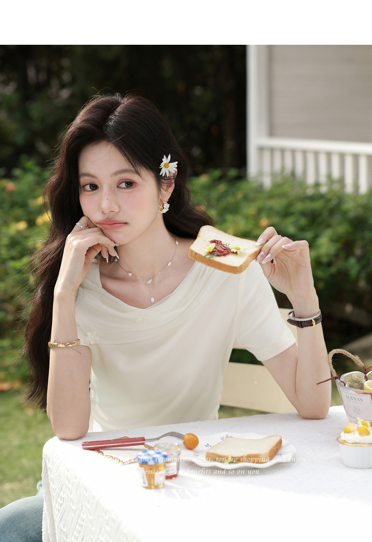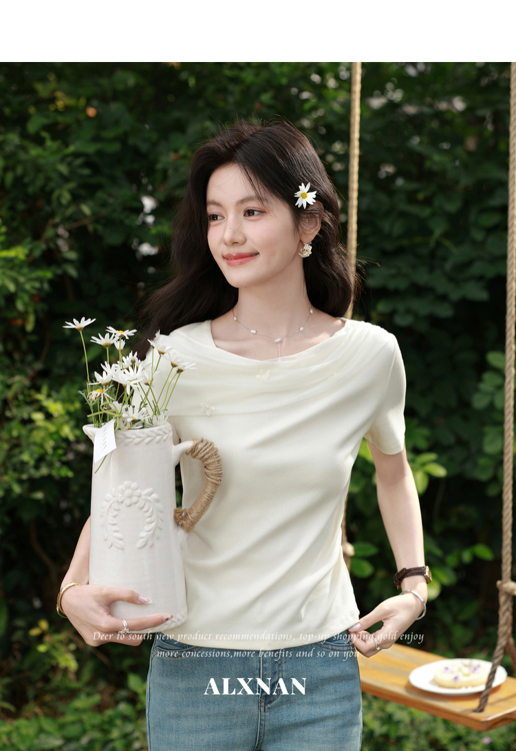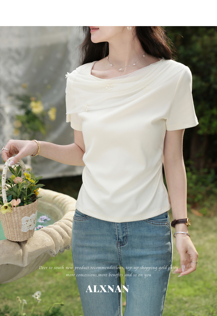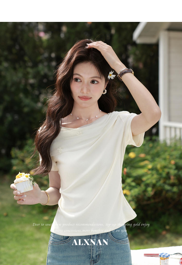 鹿向南【0331/20:00新品前1小时7折限量100件】简约杏色设计感T恤