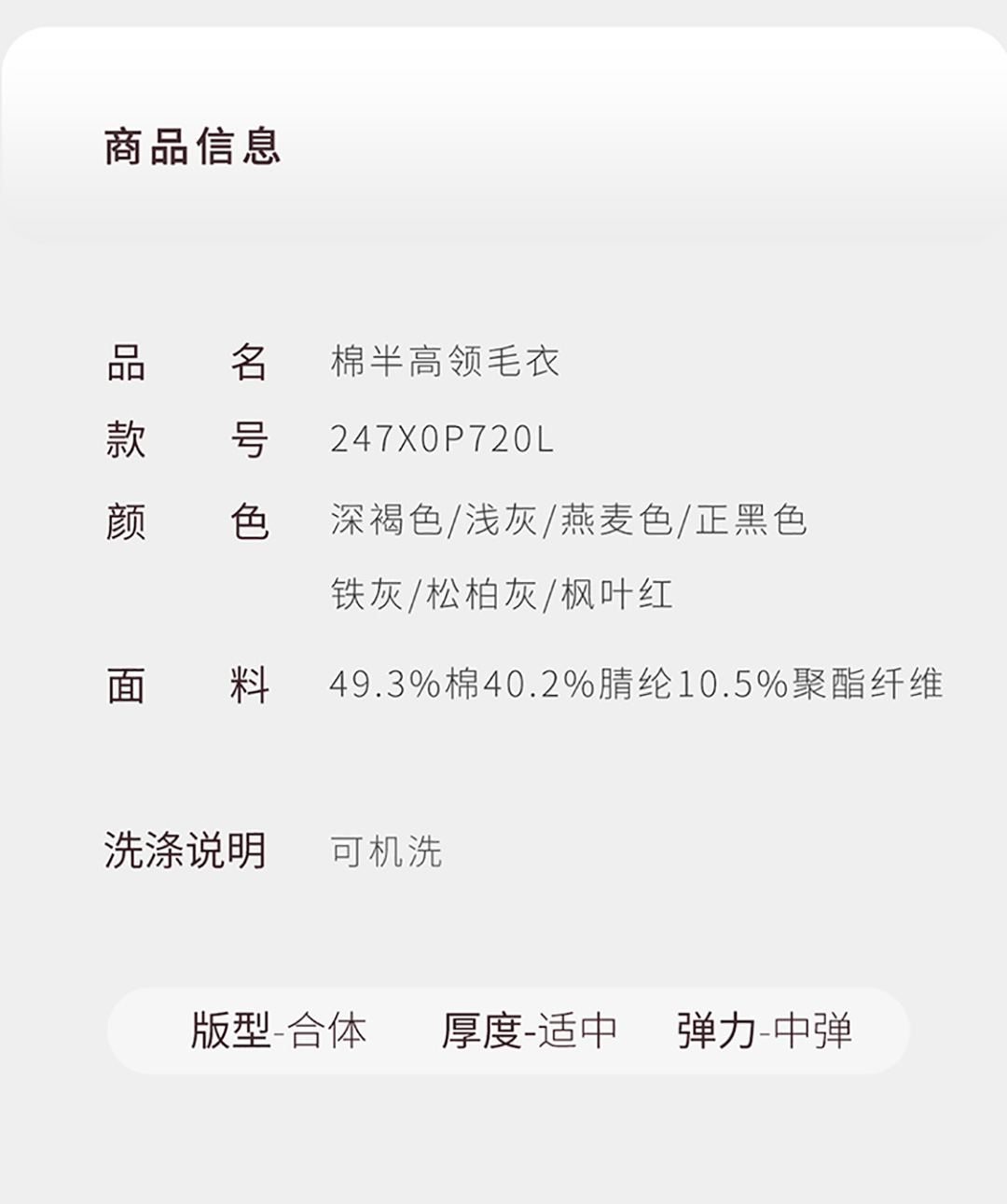 【[轻织系】]重磅棉蓄热保暖半高领毛衣247X0P720L