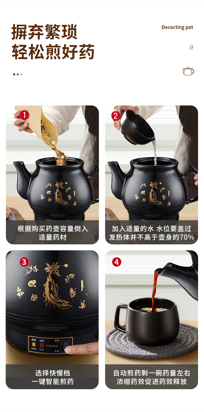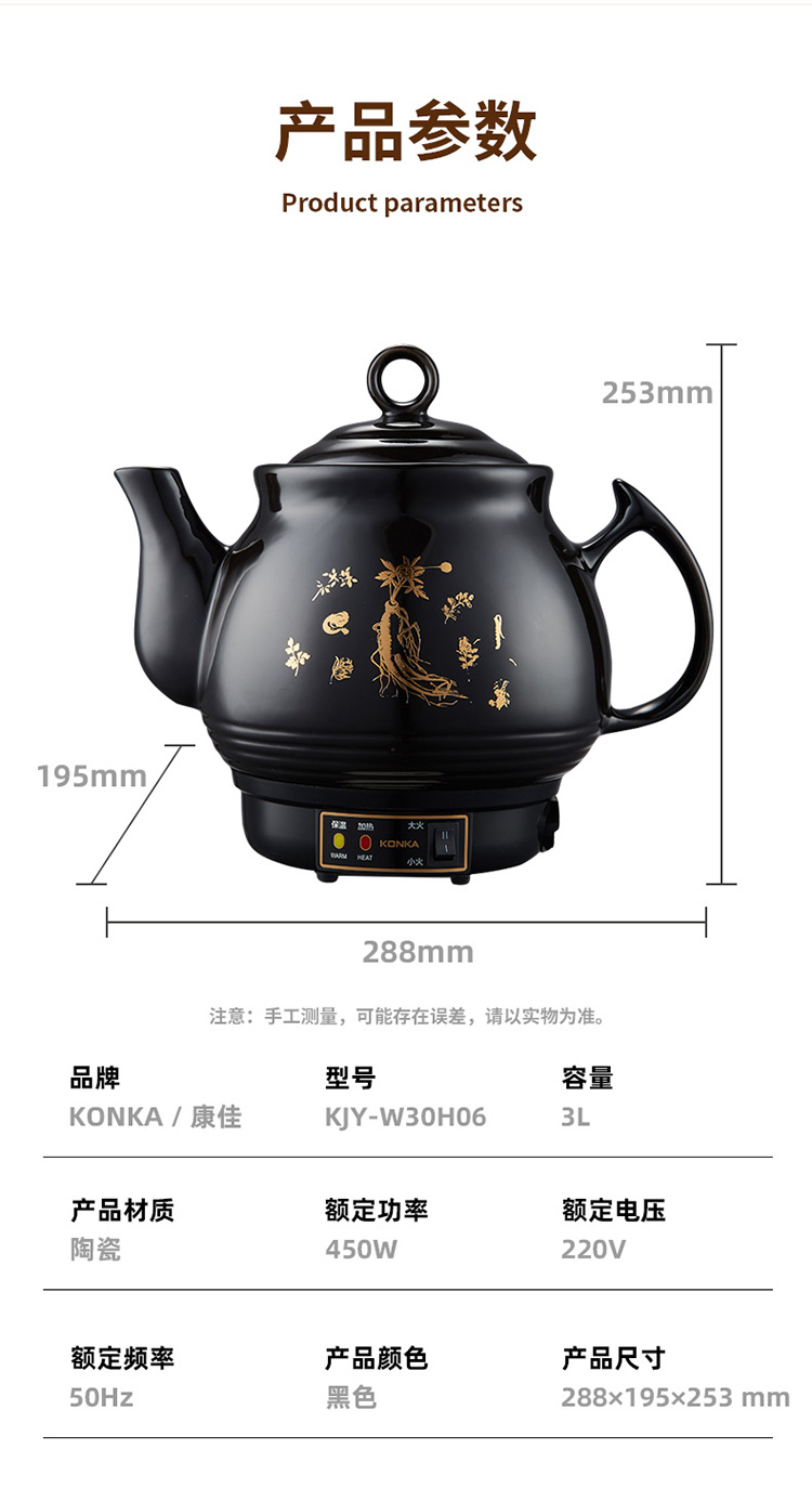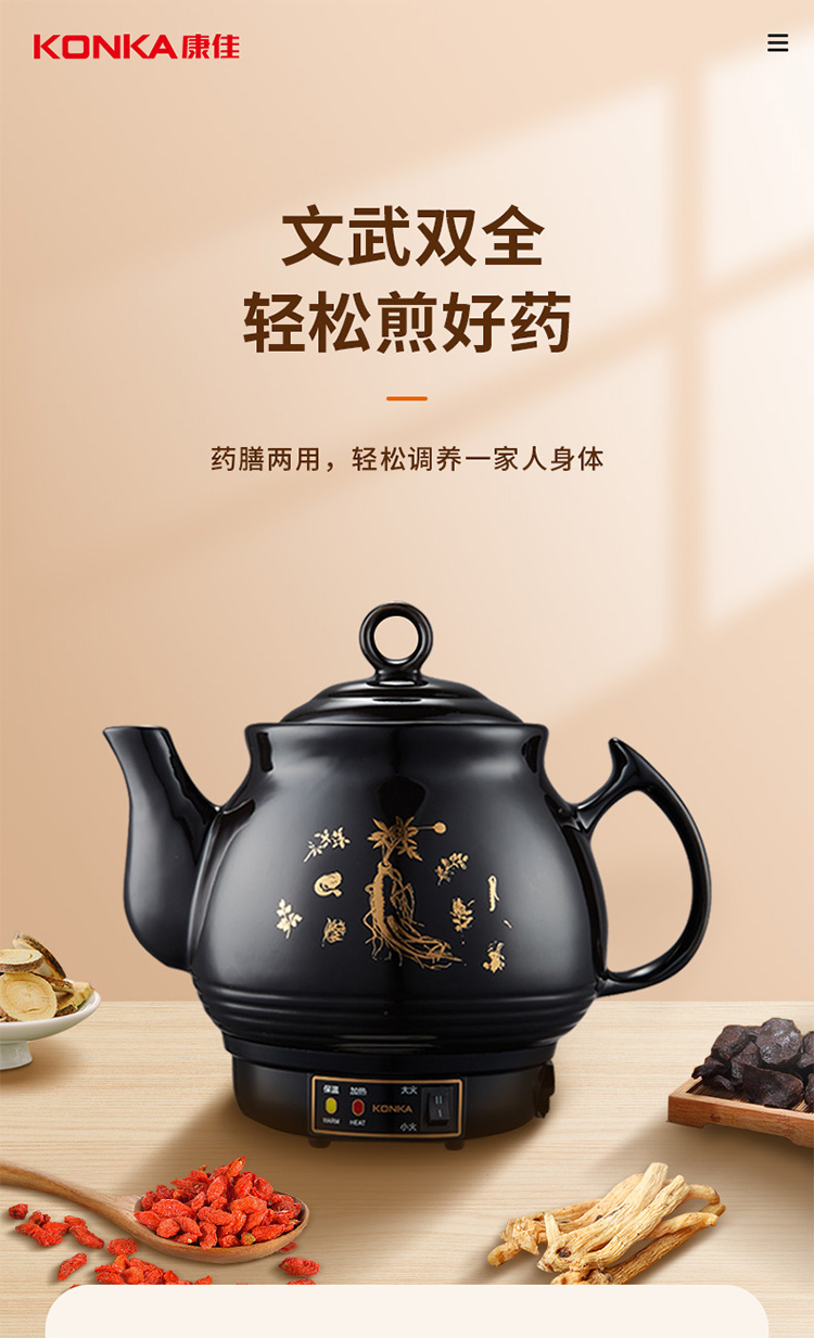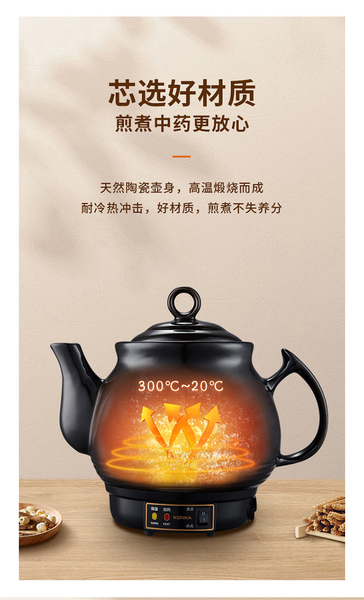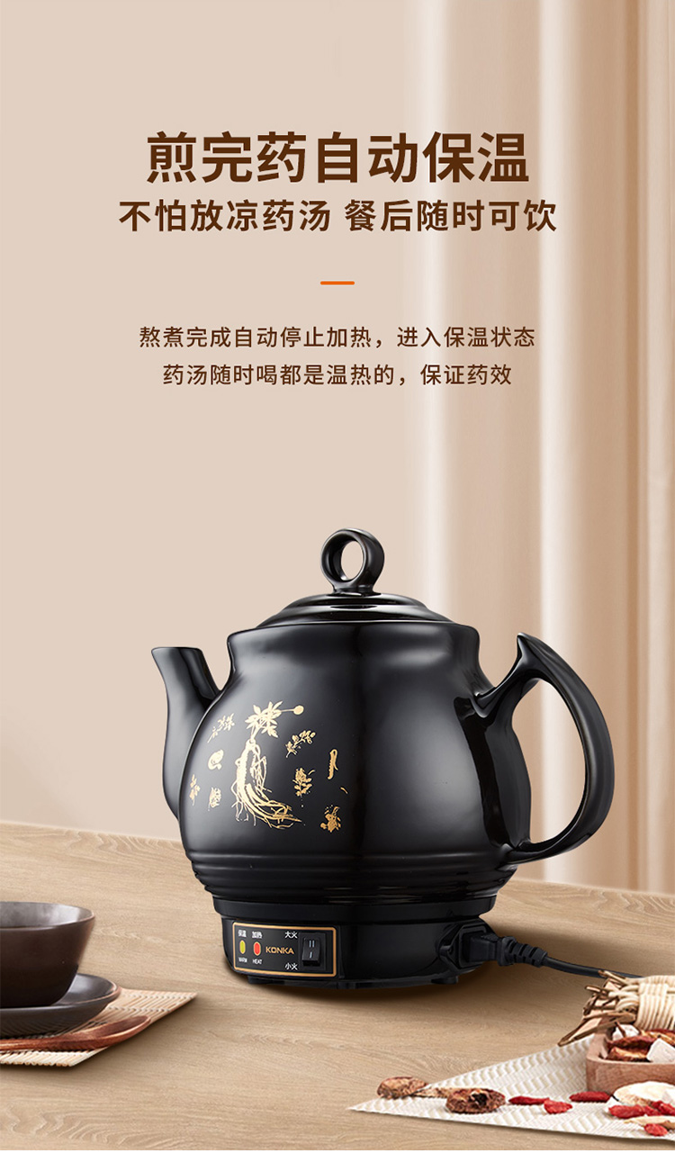 康佳(KONKA)养生炖锅煎药壶中药壶熬药罐全自动陶瓷炖药锅电子药煲煎药机 家用汤锅两档火力免看管