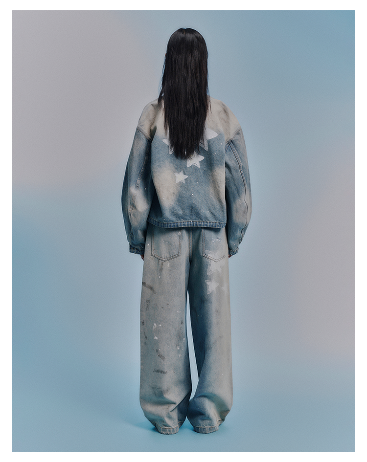 GOODBAI GOODEES梦幻星星印花水洗牛仔夹克