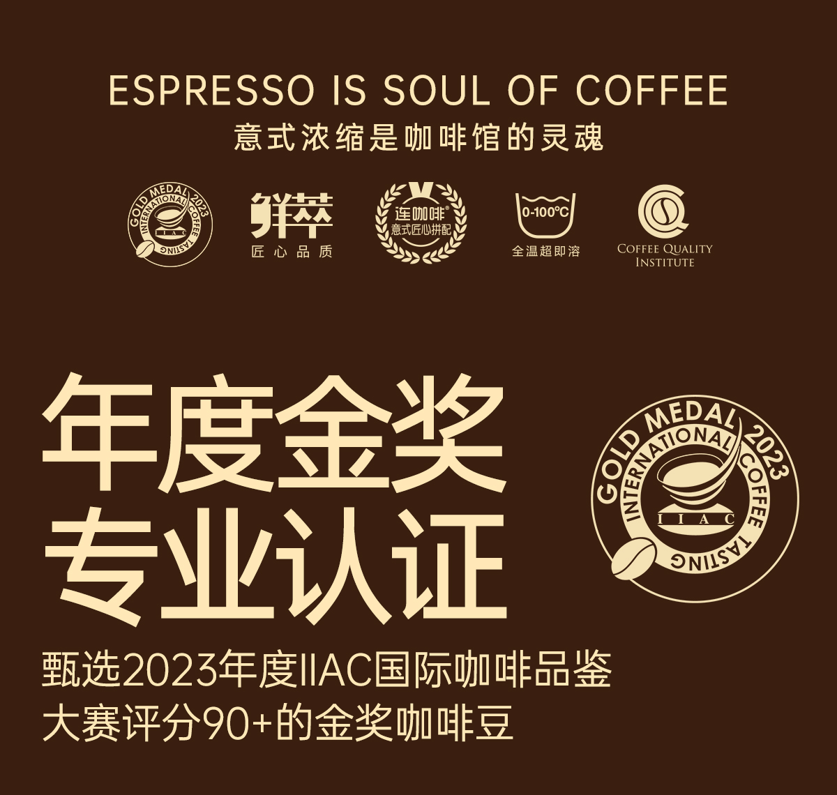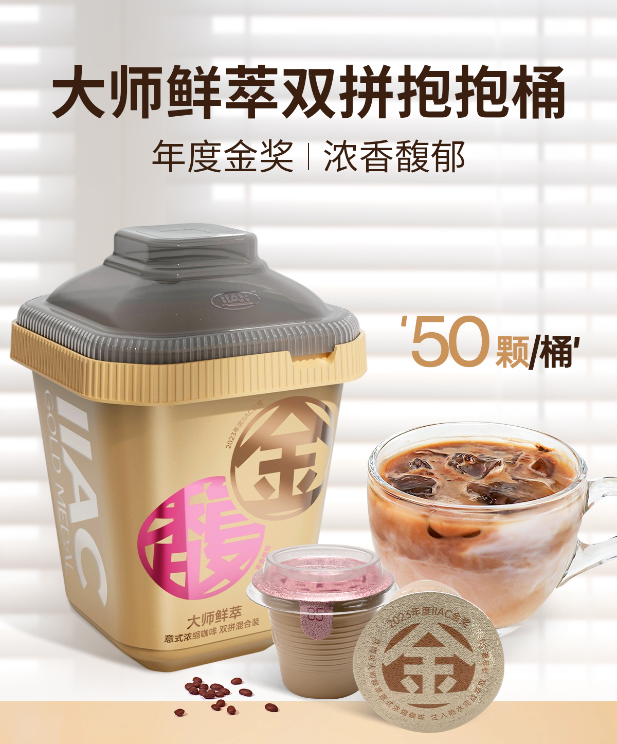 严选 | 连咖啡 大师鲜萃意式浓缩黑咖啡IIAC金奖 金馥顺桶 3g*50颗