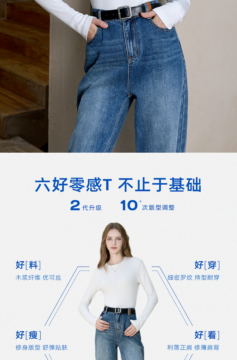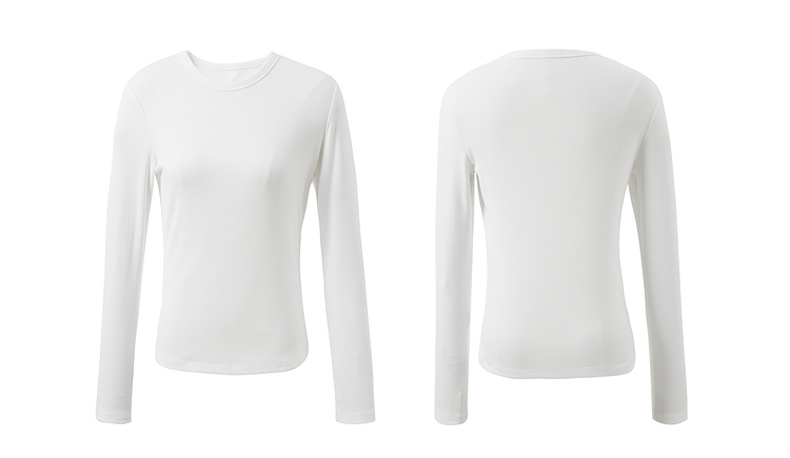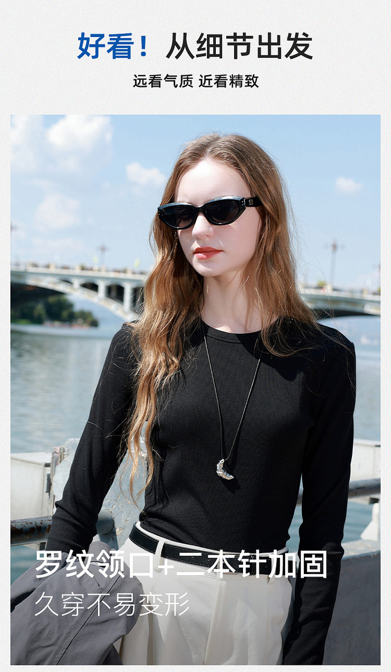 三彩2026春季新款简约纯色圆领长袖T恤套头打底衫上衣修身Z
