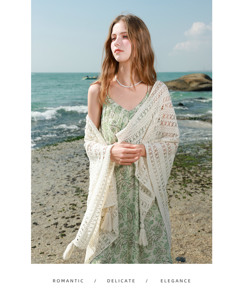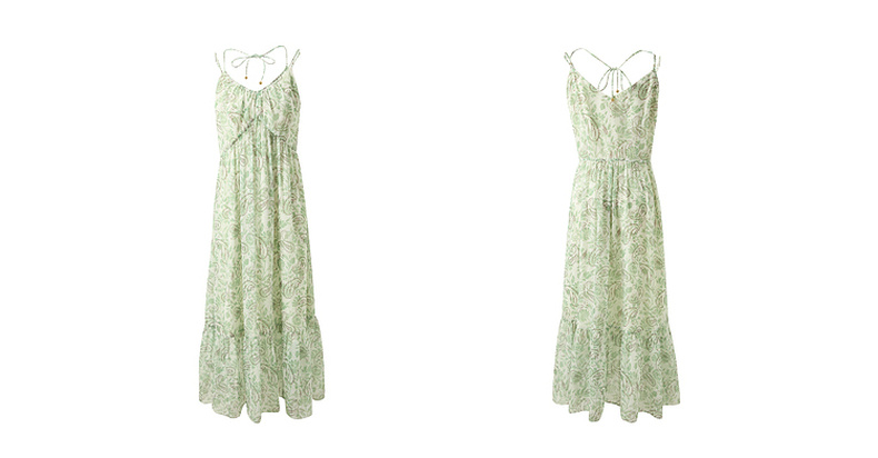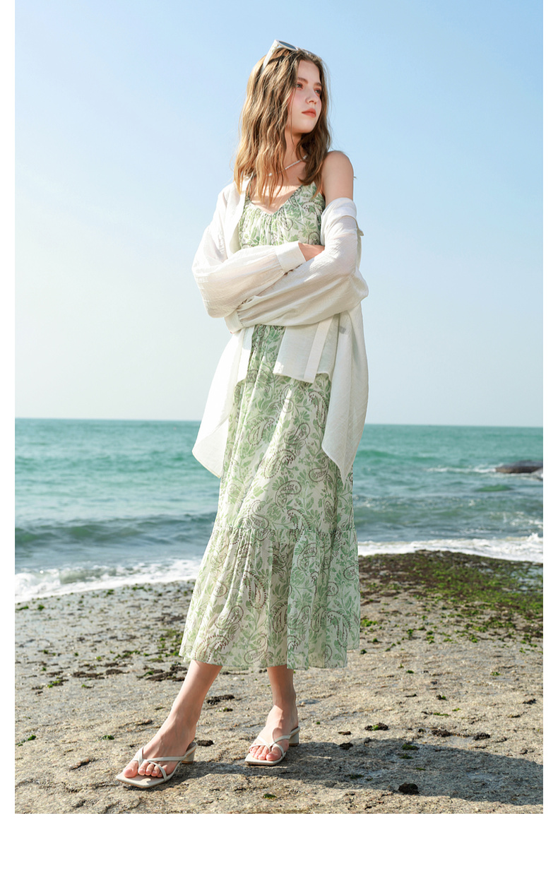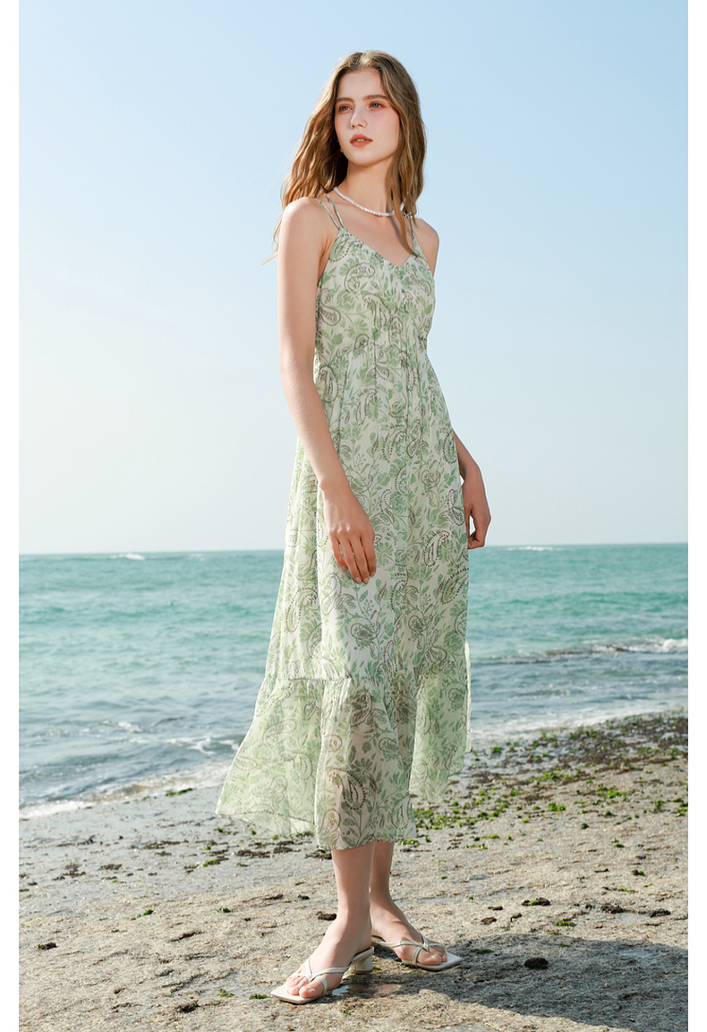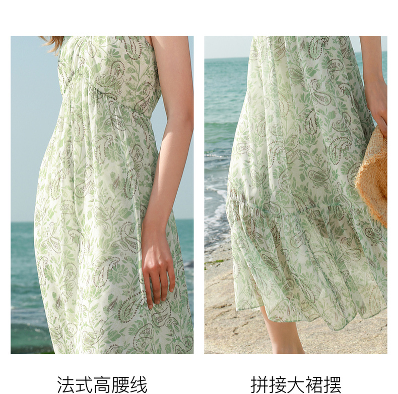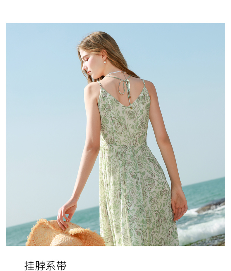 三彩2025春季新款度假风吊带裙无袖连衣裙A字裙浪漫长裙M