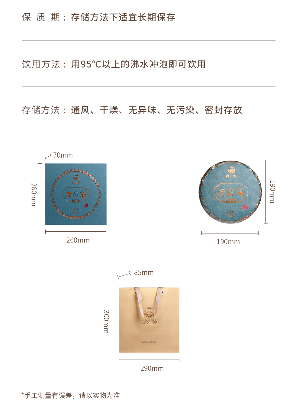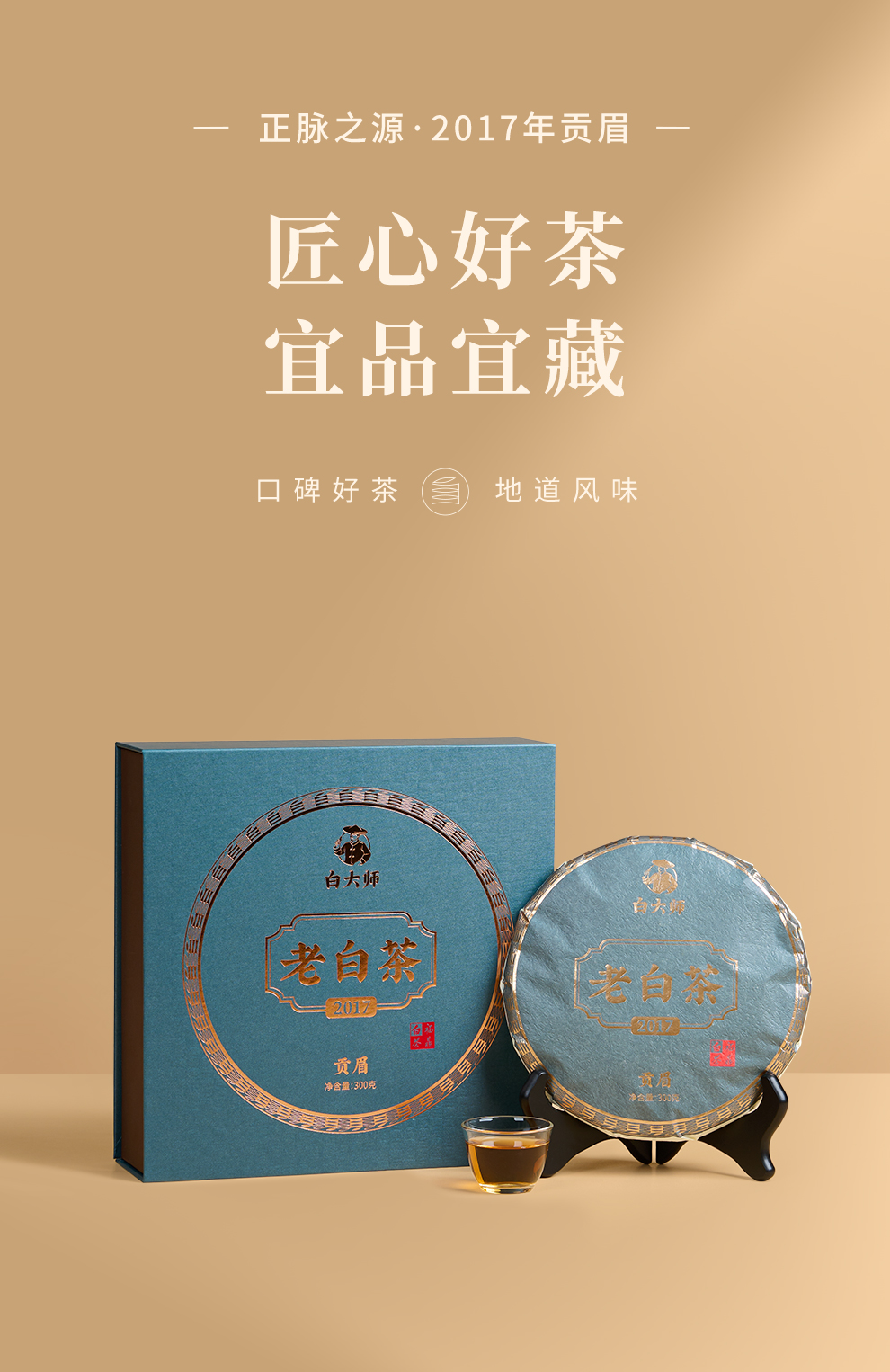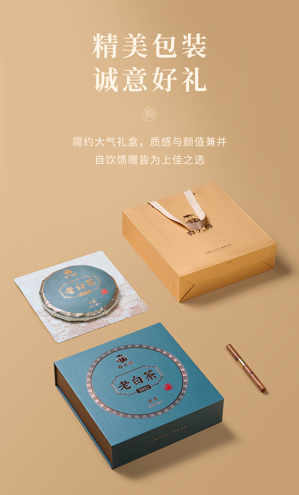 白大师正宗福鼎白茶2017年贡眉茶饼紧压白茶送礼礼盒装300g