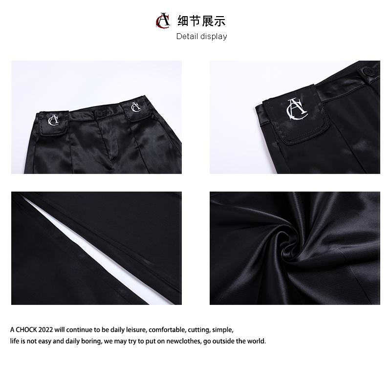 【Achock官方店】国潮刺绣微喇叭辣妹西裤休闲直筒堆积感亮面西裤