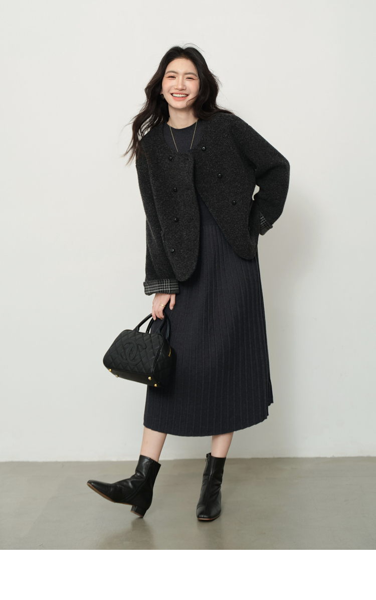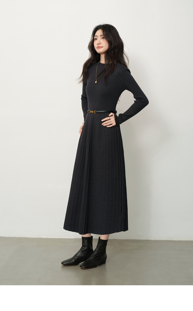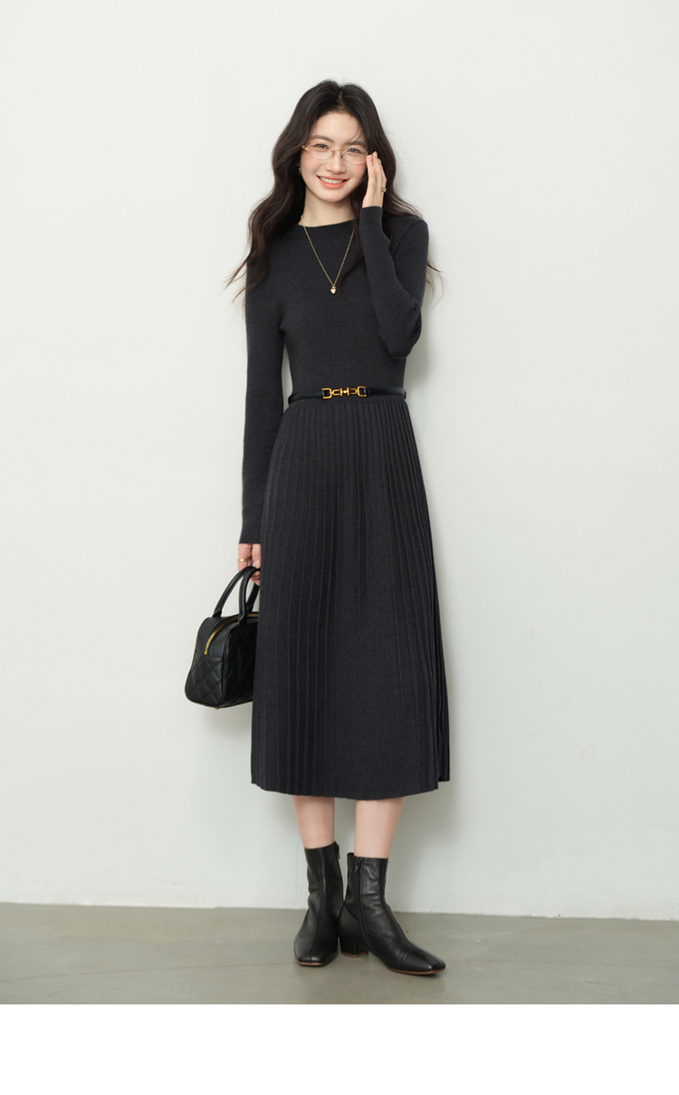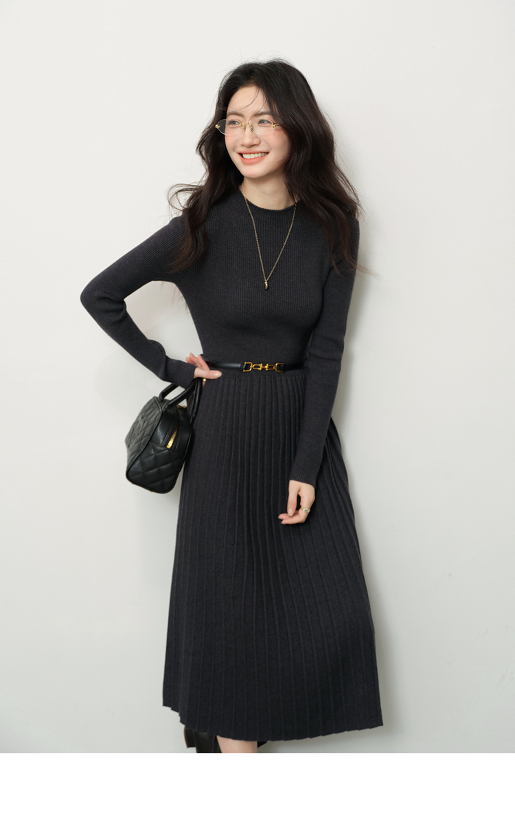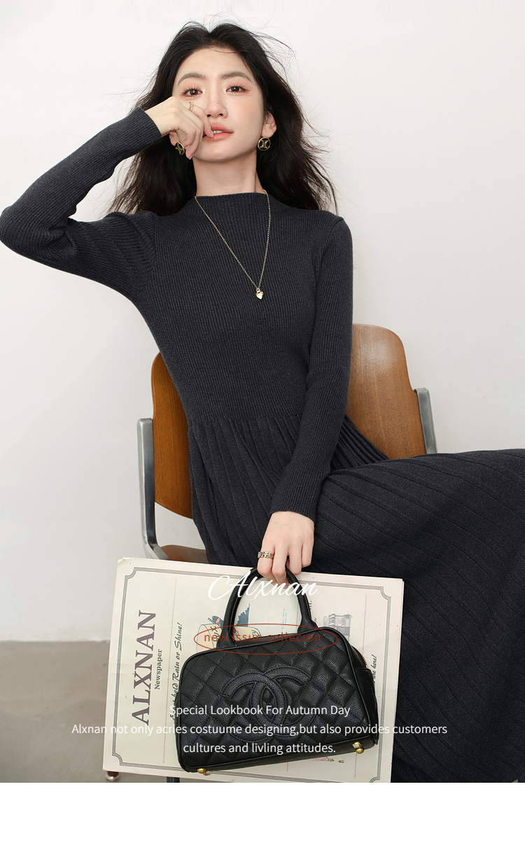 鹿向南「月下佳人」法式气质针织连衣裙女秋季灰色修身显瘦打底裙