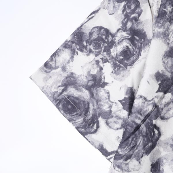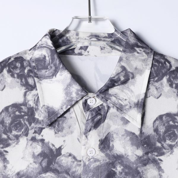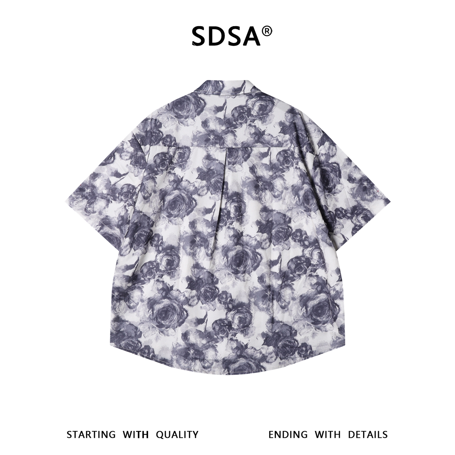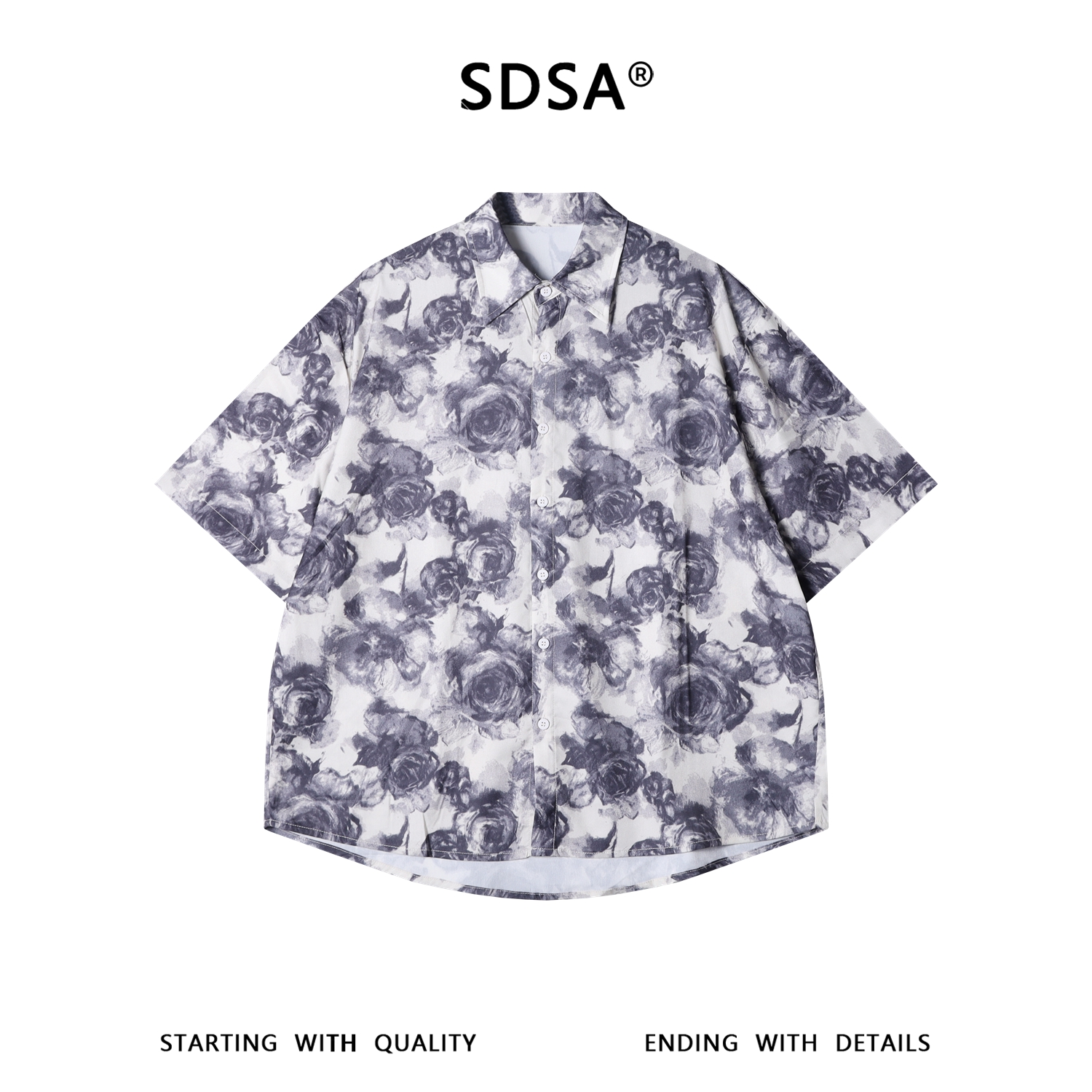 SDSA男装2026新款高贵轻奢水墨玫瑰满印短袖衬宽松落肩休闲上衣