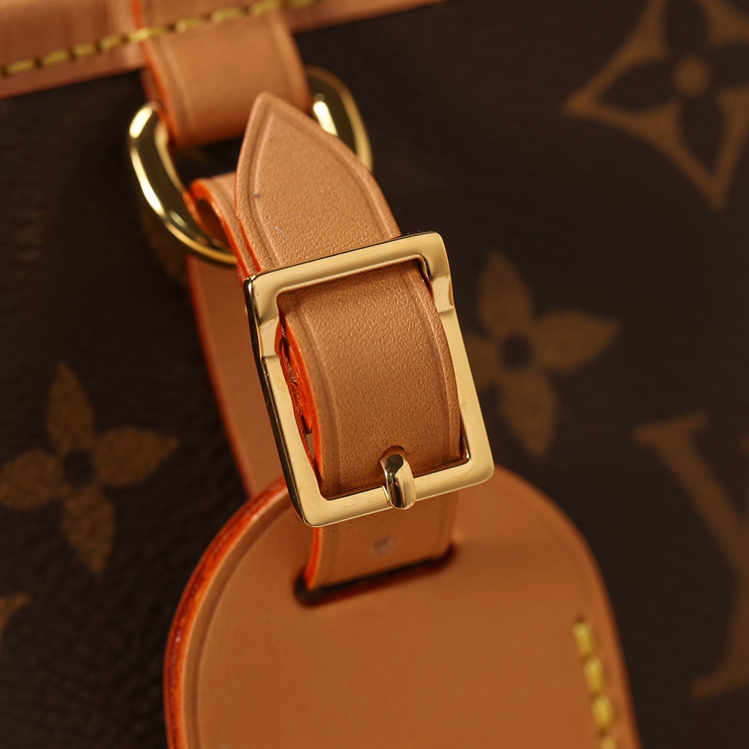 由 Monogram 帆布制成,点缀皮革细节,包括行李牌和可拆卸肩带。