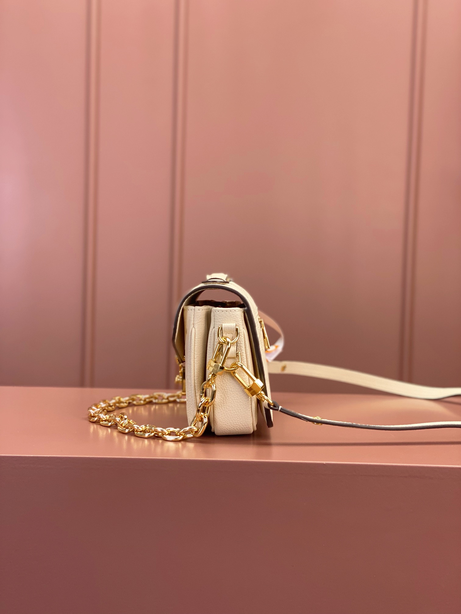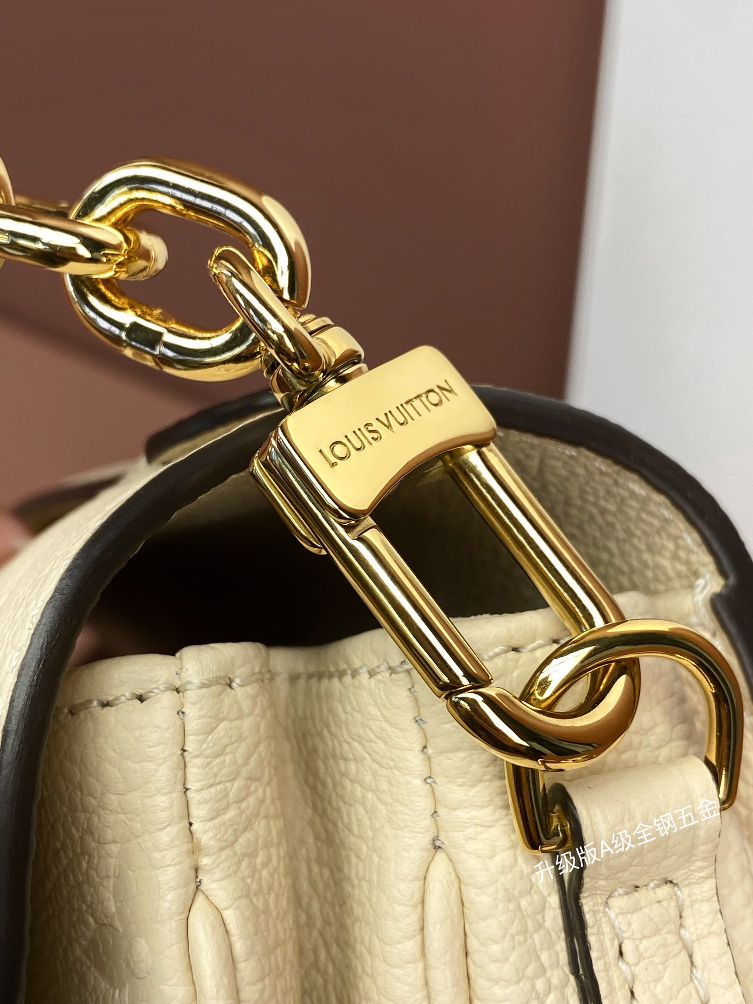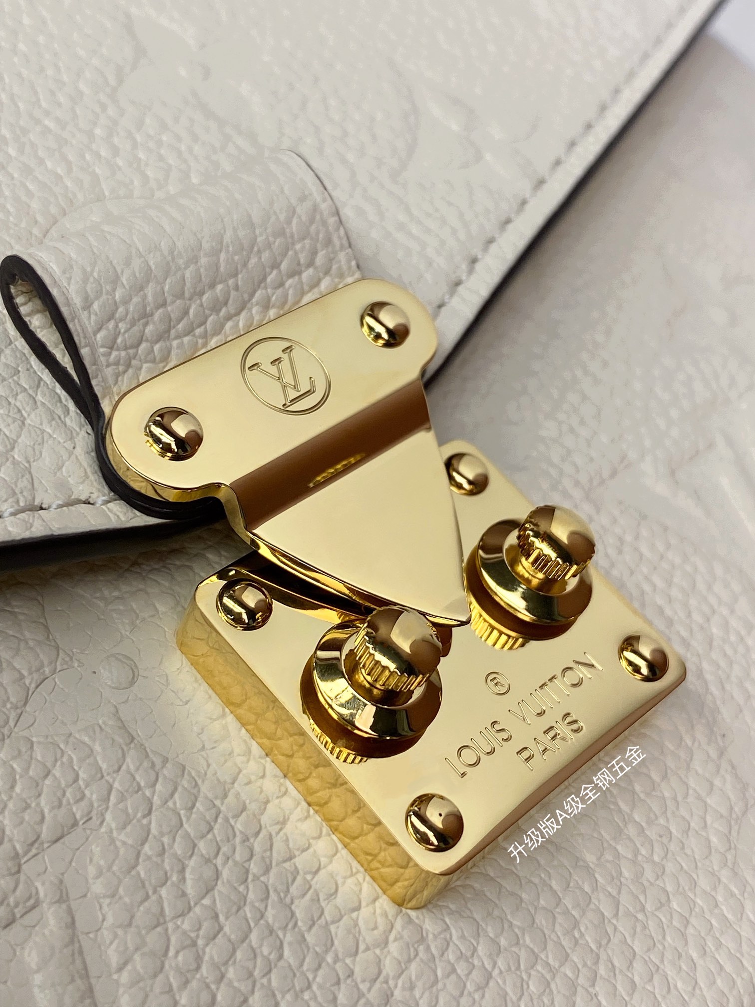 本款 Pochette Métis East West 手袋取材 Monogram Empreinte 压纹皮革,展现品牌风尚与摩登元素的融合。传统 S-lock 锁扣和可拆卸短链条闪耀金属光泽,精巧构型囊括齐整内里,可调节肩带方便都市畅行。