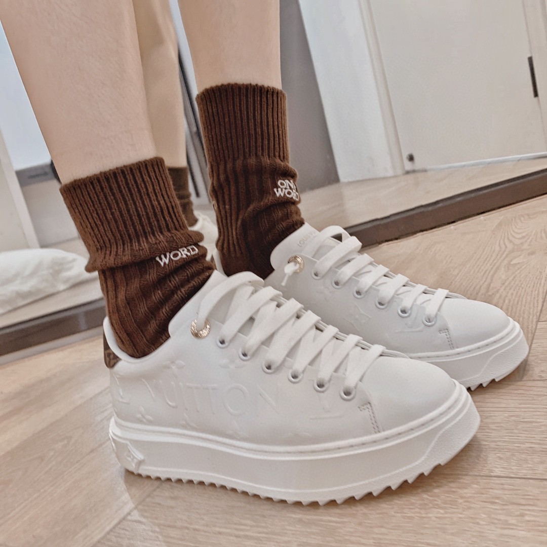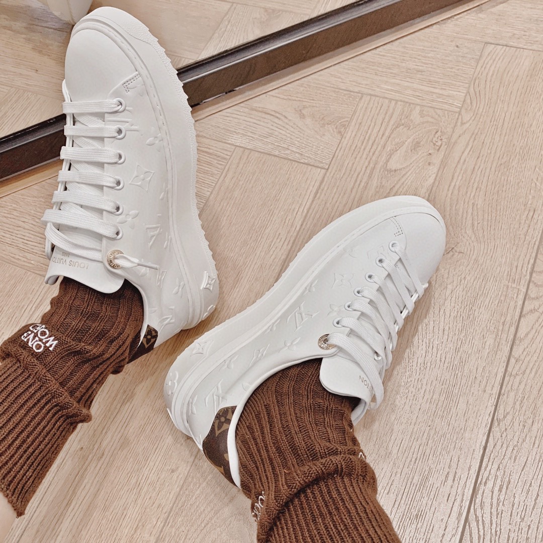 #限女款 【Louis Vuitton】经典厚底小白鞋 time out系列最新款 这是一款时尚减龄 又增高的运动鞋 侧身彩色logo字母 洋溢青春活力 上脚实在太好看了 超显腿长 鞋面原版一致牛皮 鞋身字母3D压花工艺 垫脚水染牛皮 耐穿耐磨 大底开模TPU 质感无敌 细节无可挑剔 闭眼入