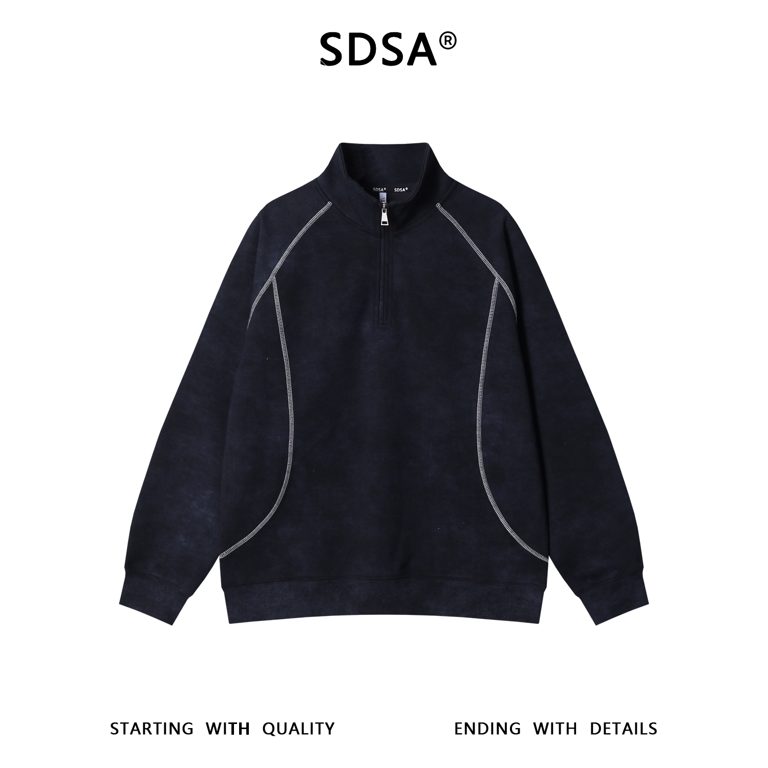 WY1318SDSA男士秋冬新款痞帅男装潮牌扎染撞色缝线半拉链立领卫衣百搭