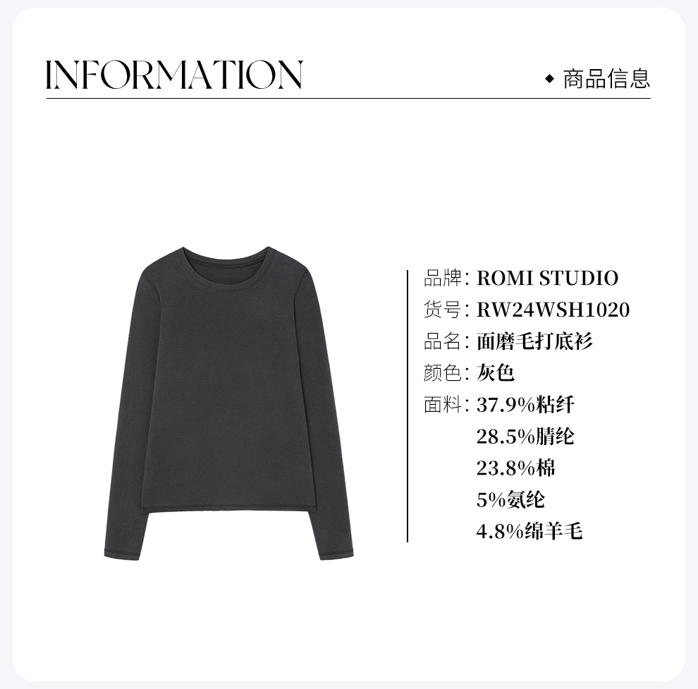 ROMI STUDIO“肤感至上” 绵羊毛混纺高弹磨毛长袖T恤 RW24WSH1020