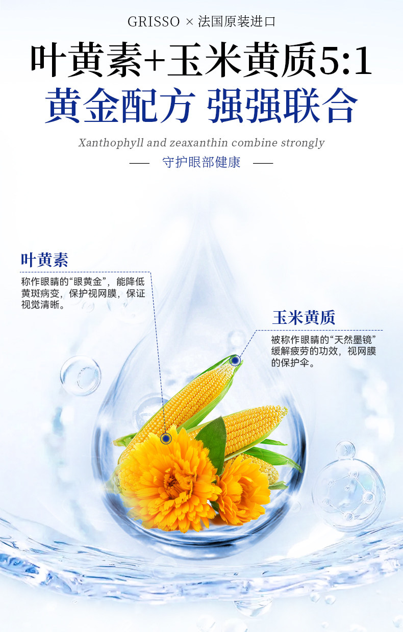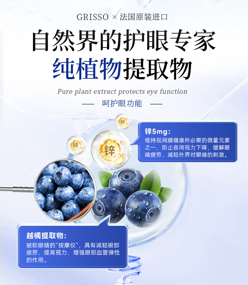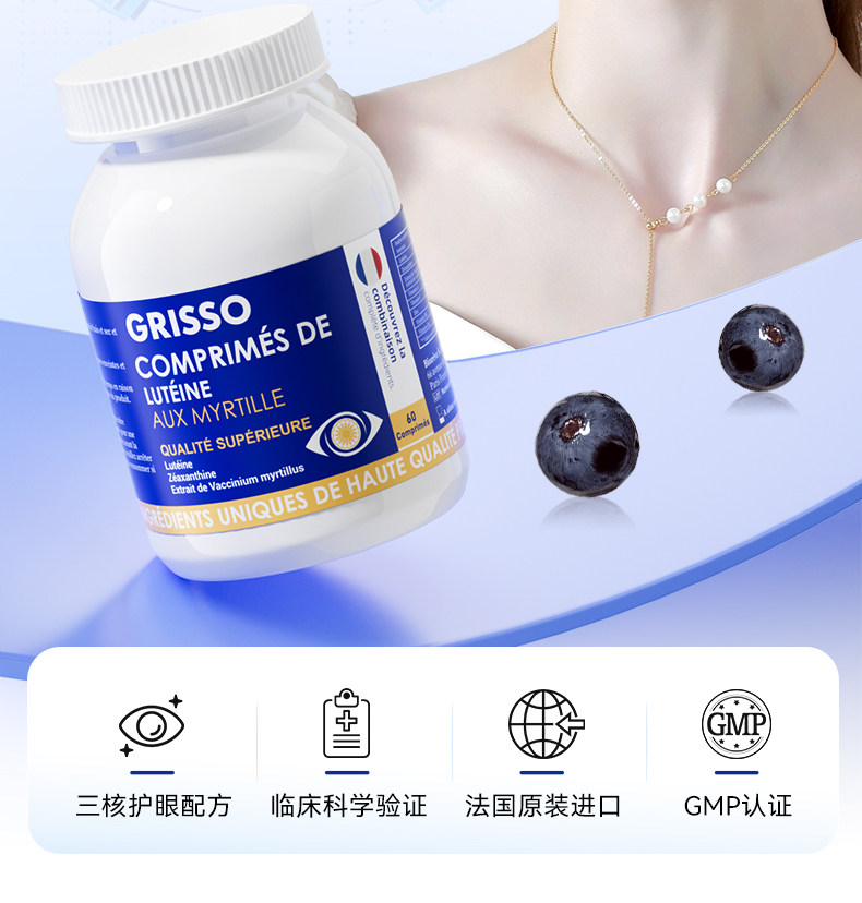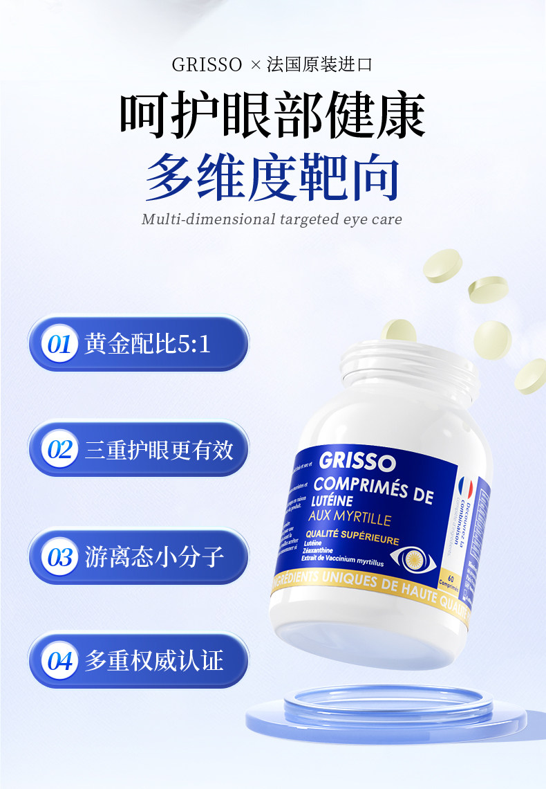 GRISSO格瑞索叶黄素片干痒游离态小分子稳定眼视力高纯度红血丝